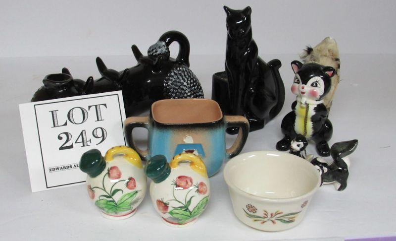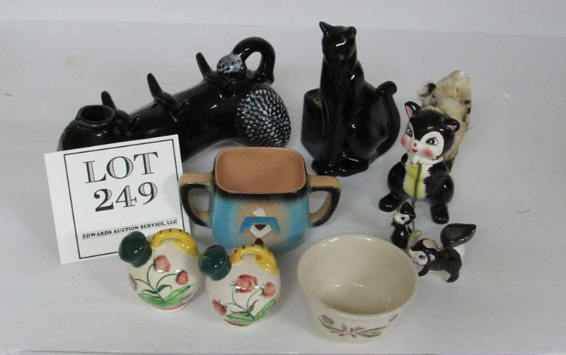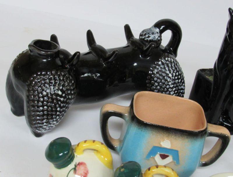 the big black thing is a base to hold a head and 6 little shot glass size mugs, think it is a poodle. The skink's tail got wet and is all matted down.