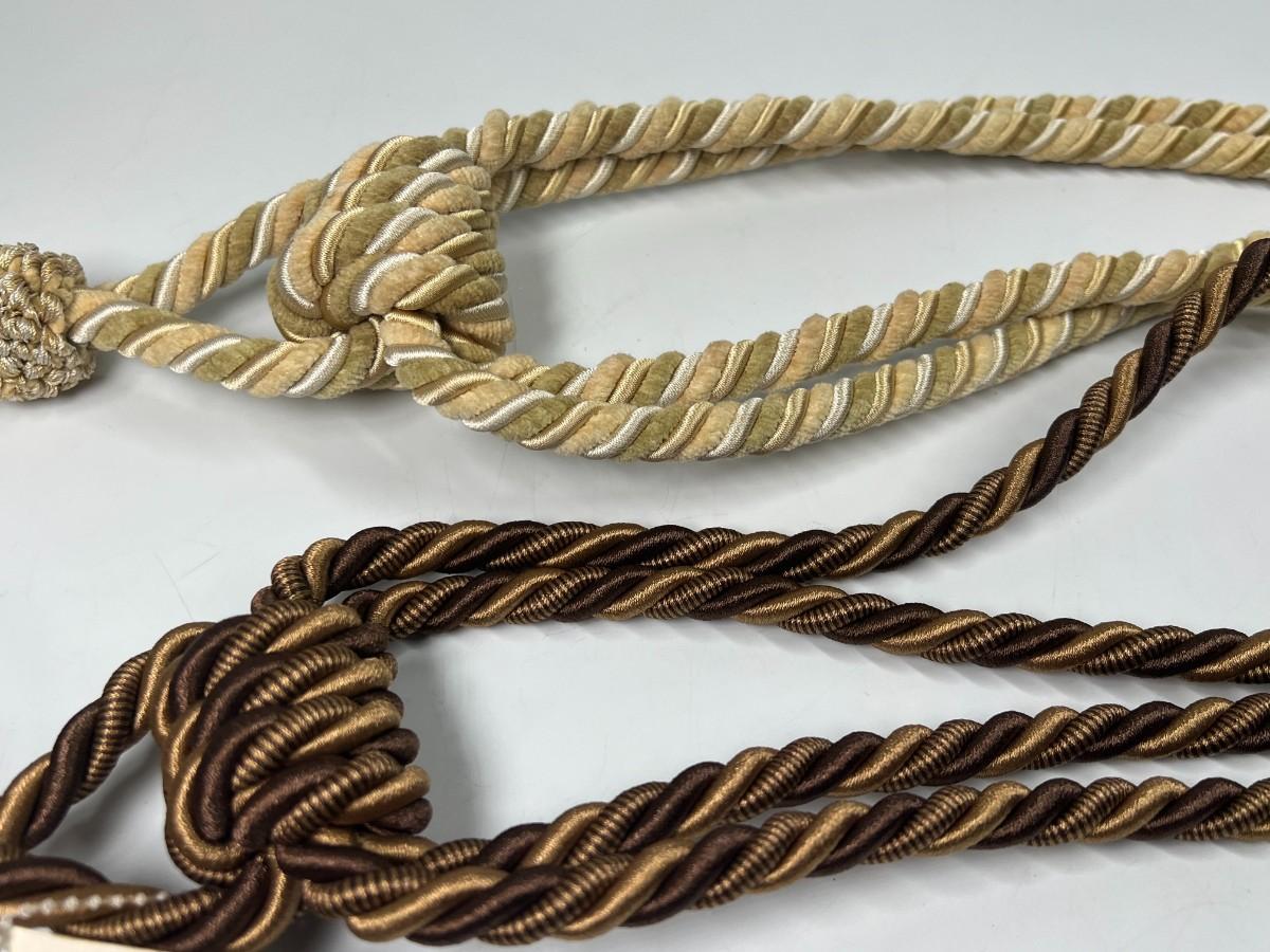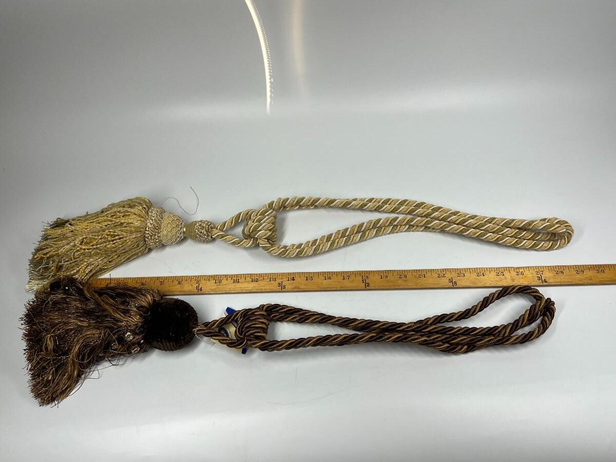 Lot of Mismatched Curtain & Drapery Curtain Tassel Tiebacks, there are no significant rips or tears to either of the tassels and is in good displayable condition. Check pictures for more details and for sizing.