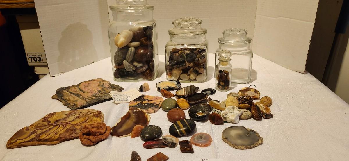 Lot of Mixed Assortment Rock Mineral Cut Slabs Moss Agate JasperCherokee Rose Rocks