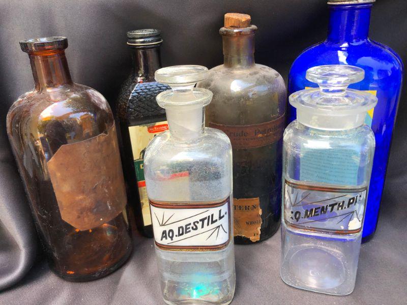 Lot #11: Lot of Mixed Vintage Large Glass Medicine Bottles