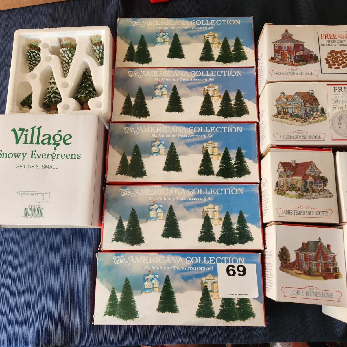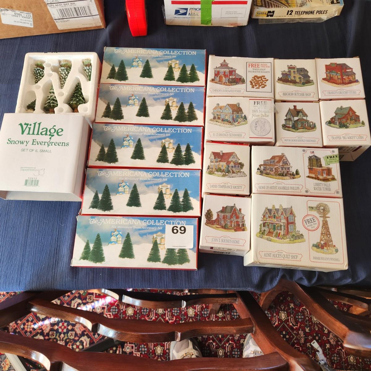 Lot of Model Train Liberty Falls Collection Buildings Dept. 56, , Miniature Trees Lot 69