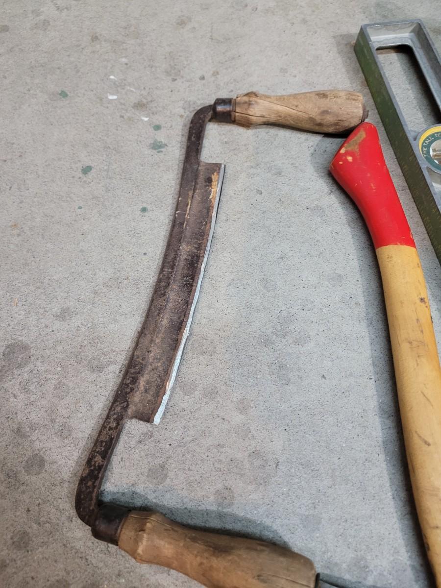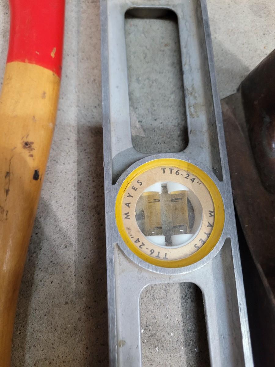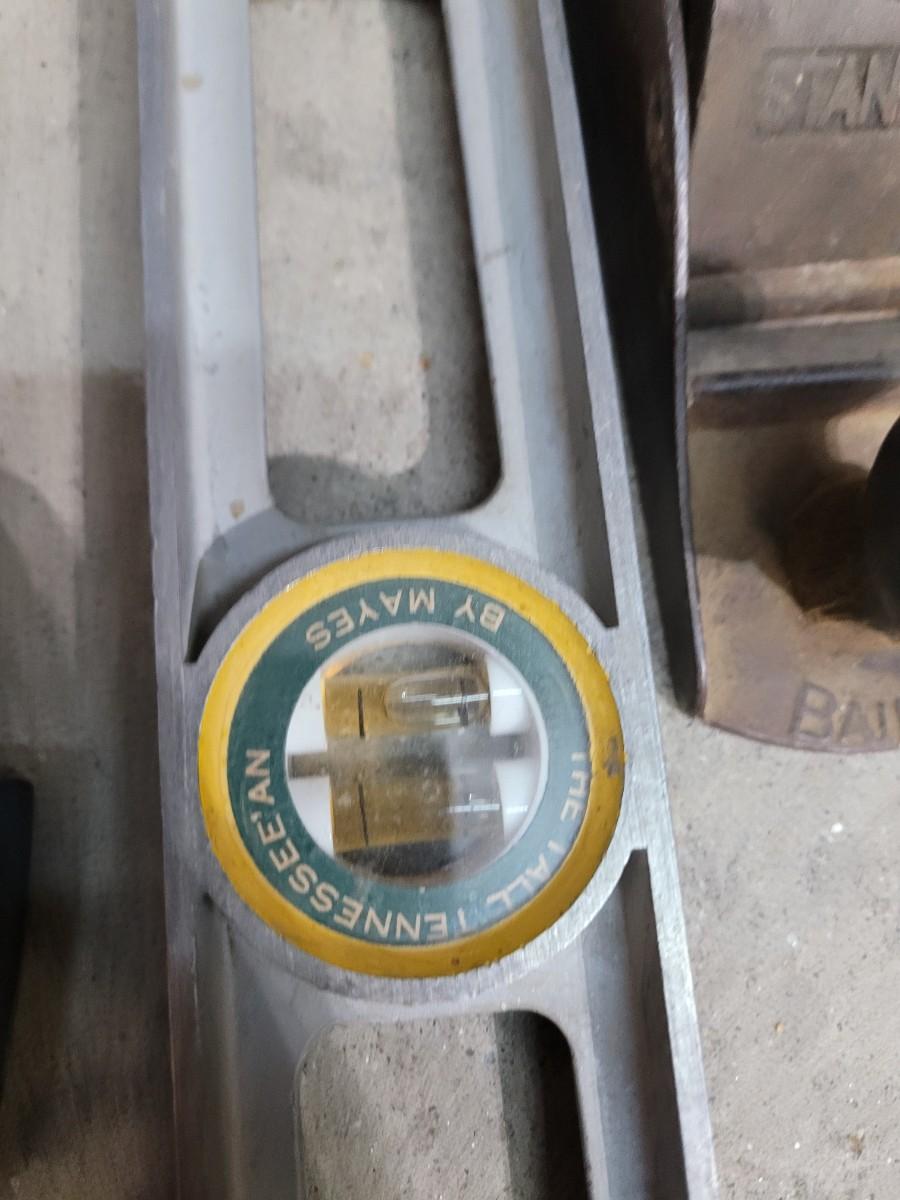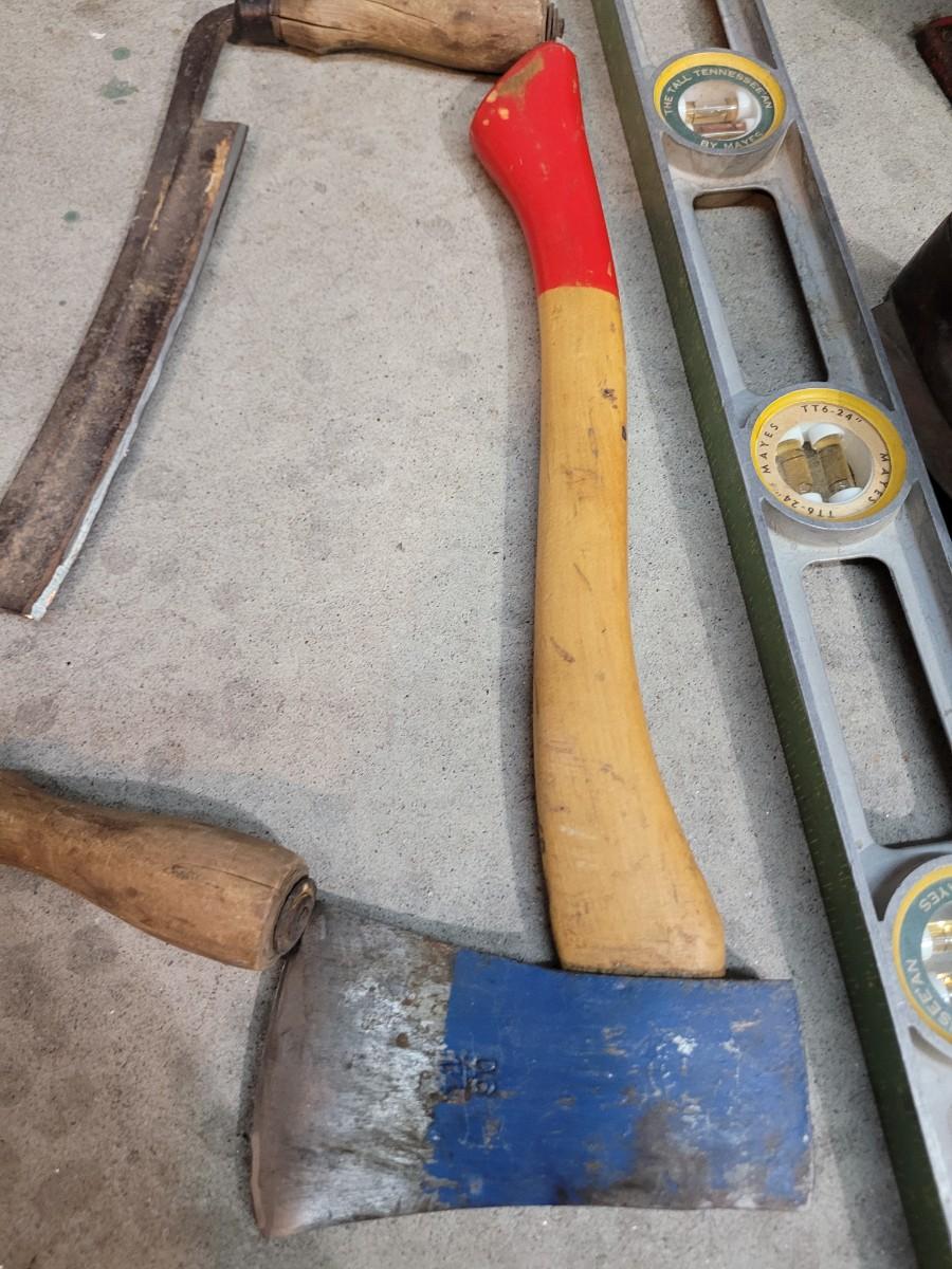As pictured, 2 levels, a hatchet, 2 planers and a bottle jack, in garage
