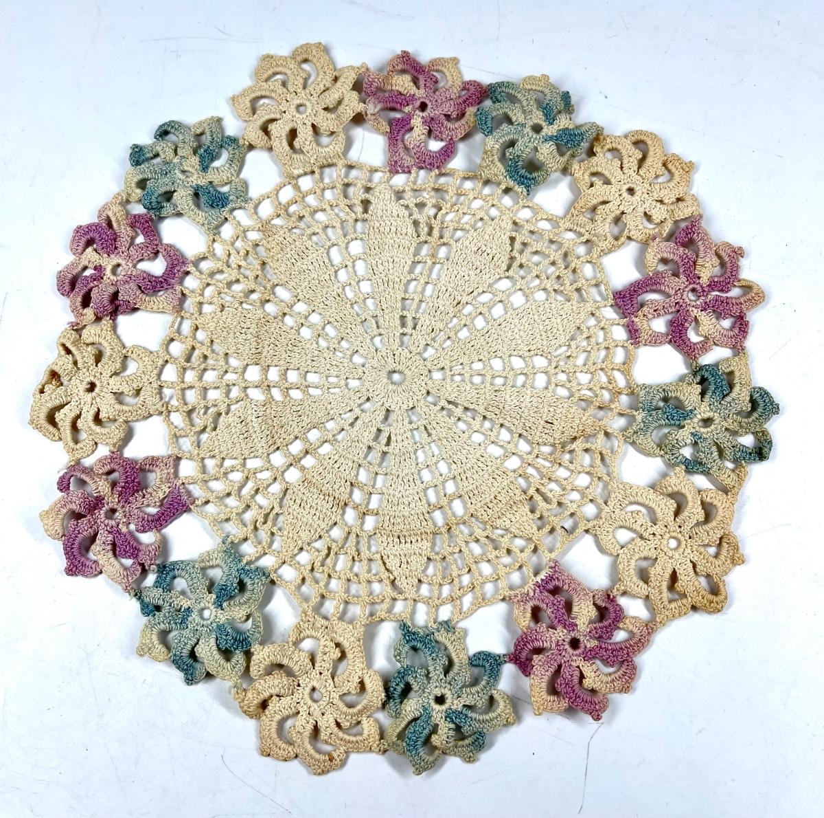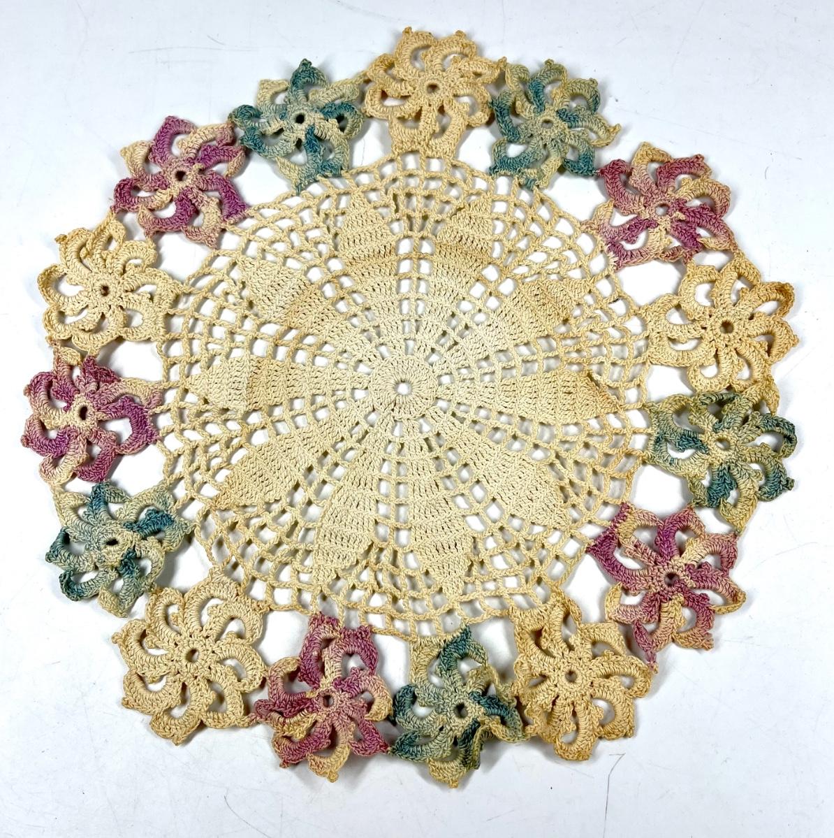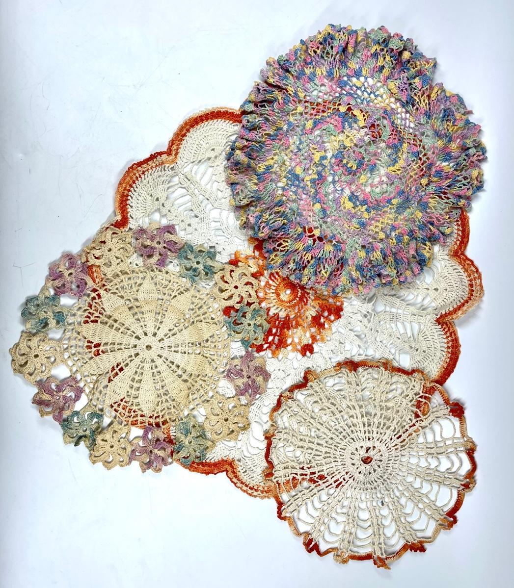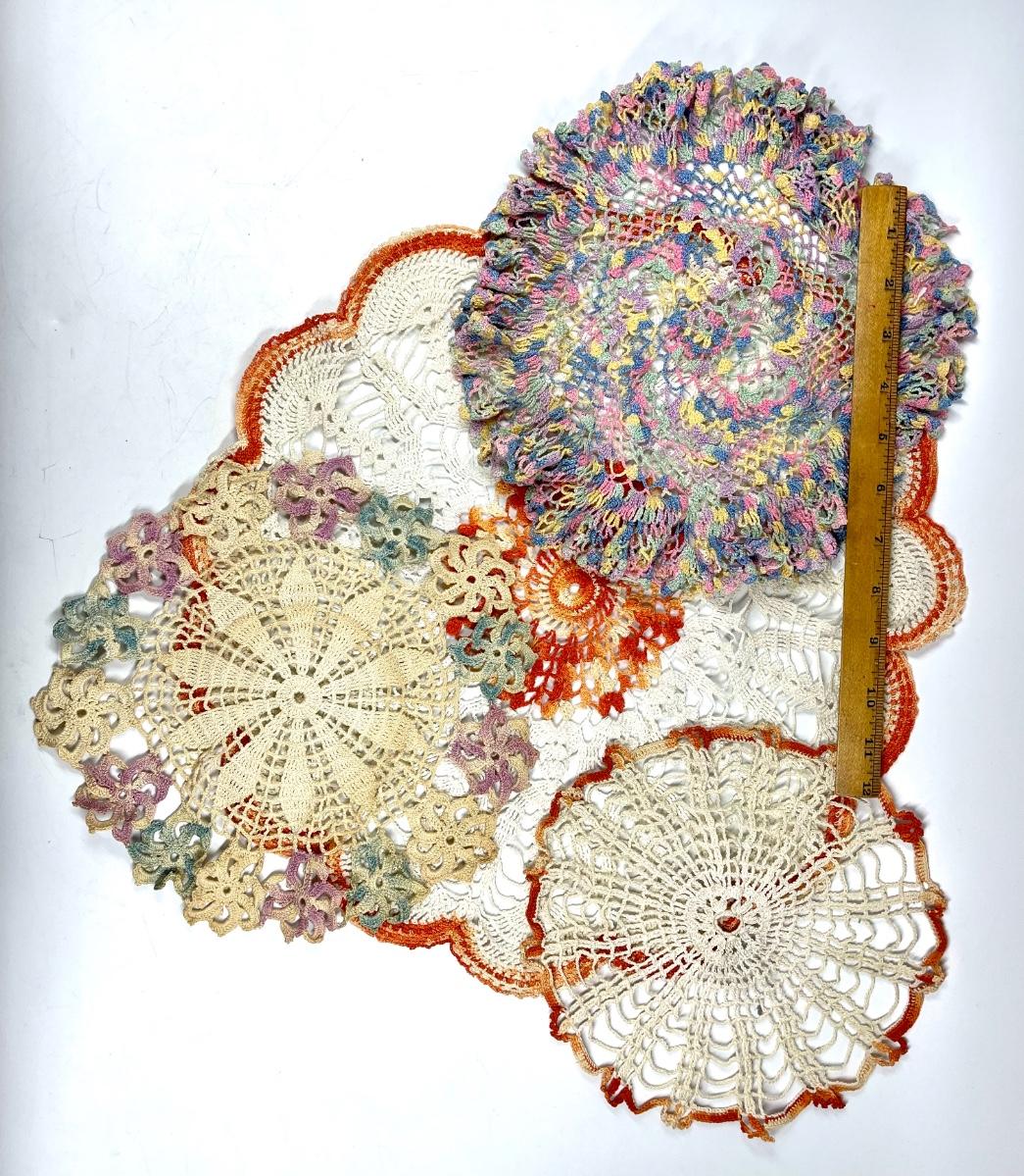 Lot of multicolor vintage linen doilies