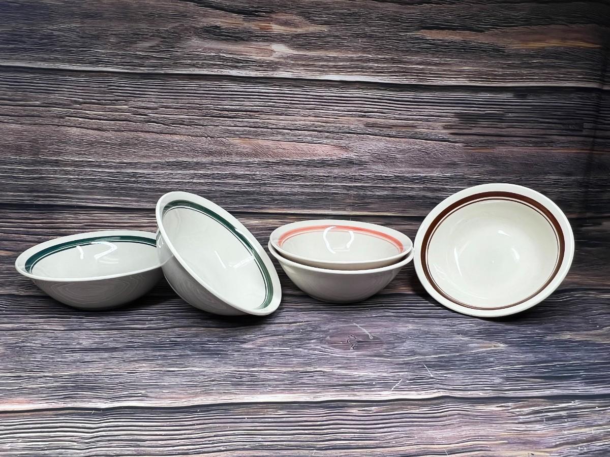 Lot of Multiple Color Band Ceramic Soup Serving Bowls