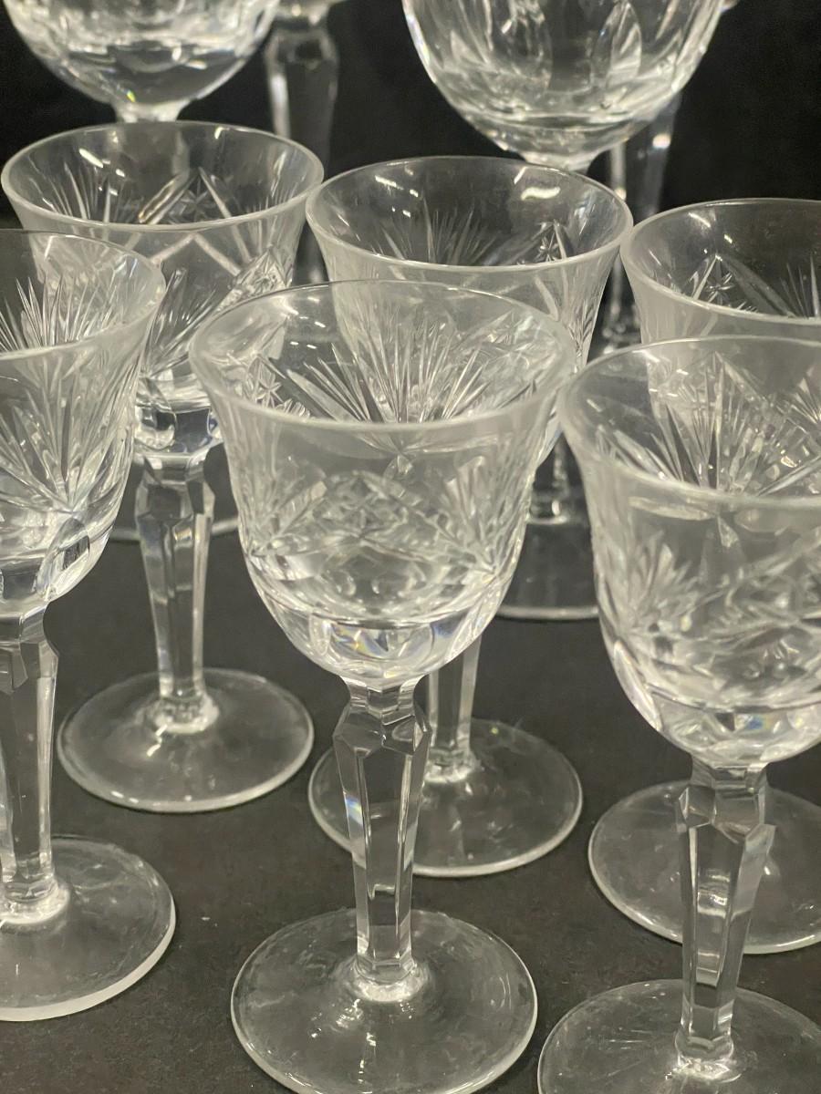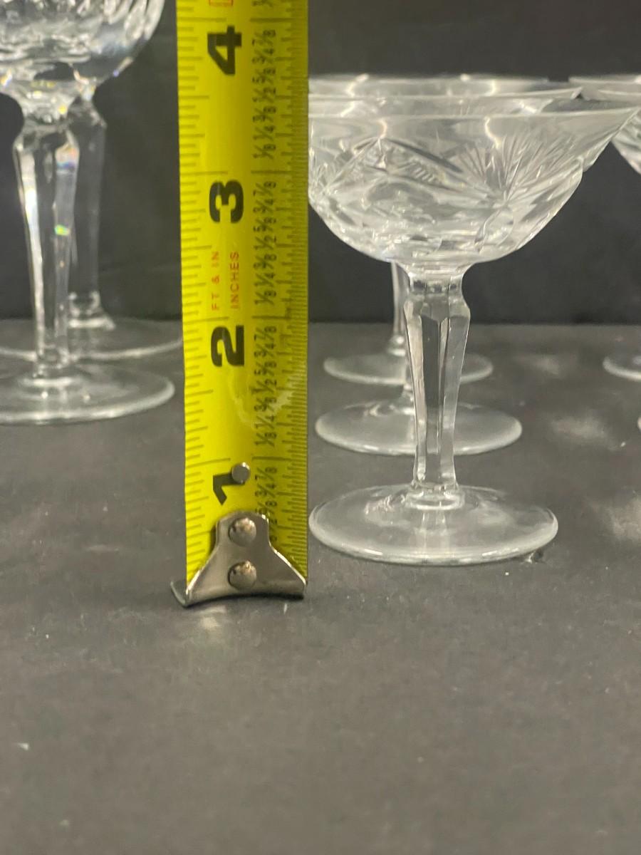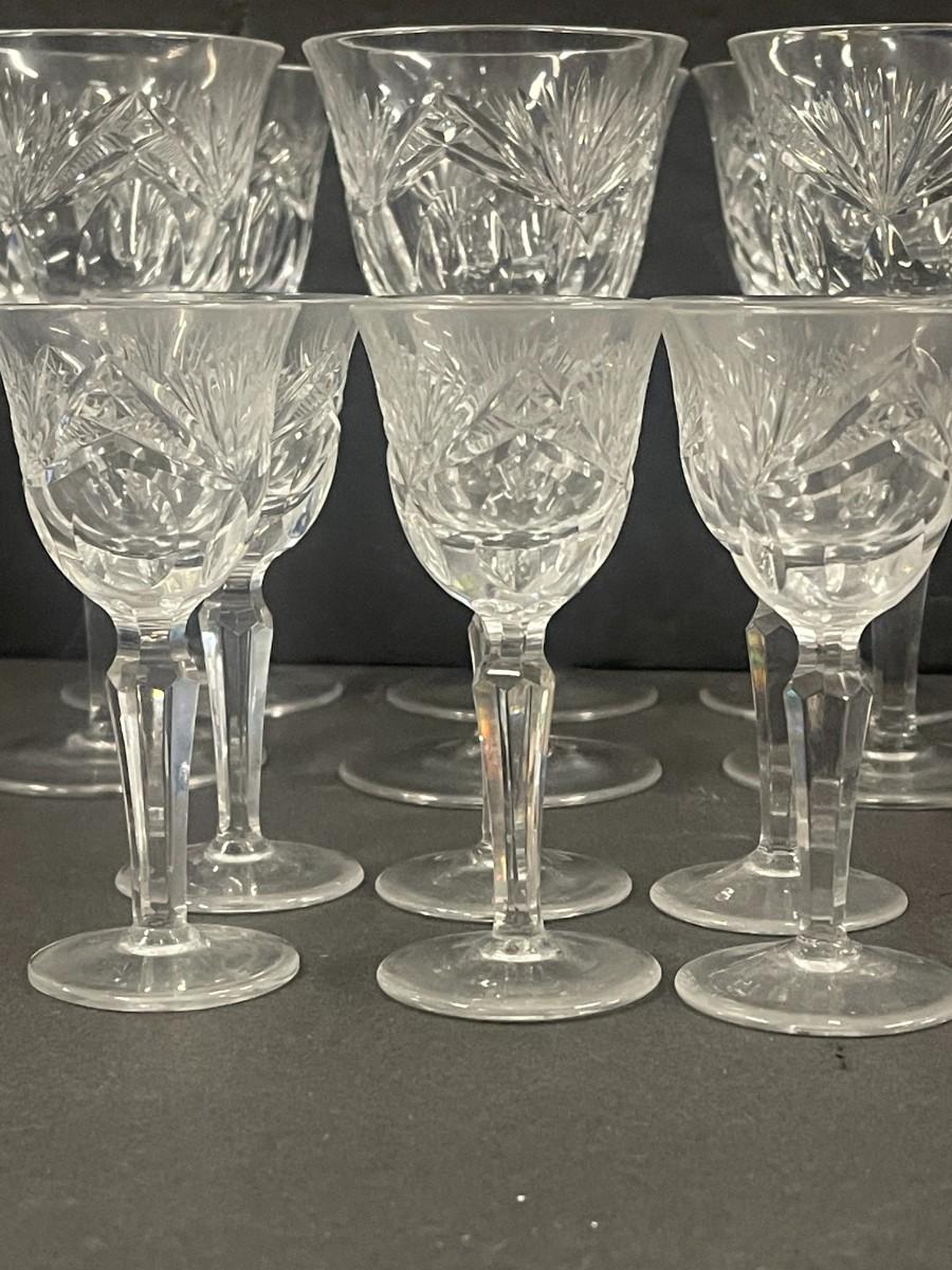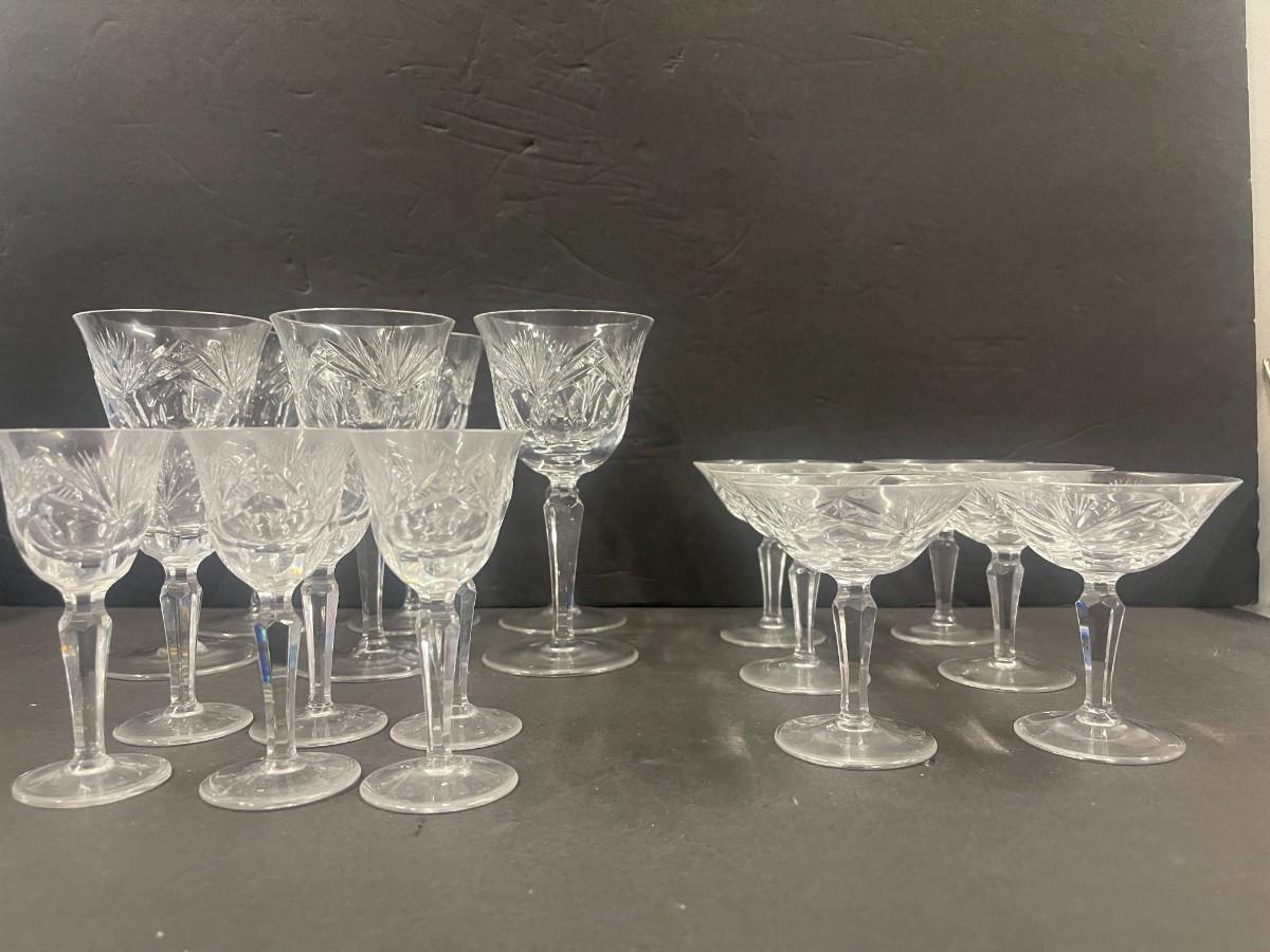 Lot of Nachtmann Andernach Clear Thumbprint Fans Stars Germany Stemware. Includes 6 wine glasses, 6 cordial glasses and 6 wide rim cocktail glasses. All excellent condition.