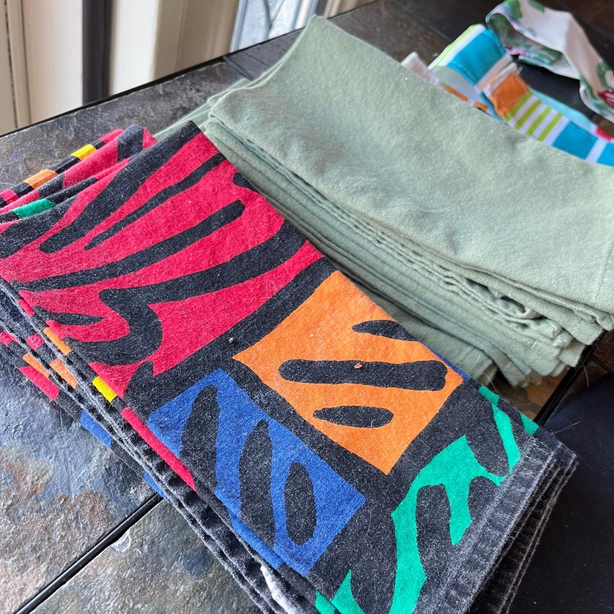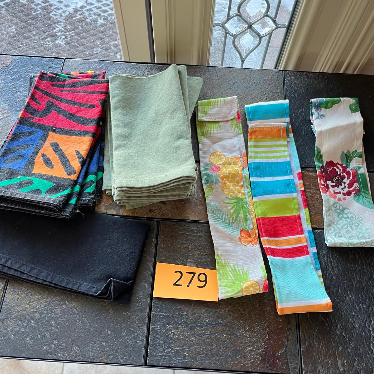 Lot of misc. cloth napkins. Not sure what the loop things on the right are for.
