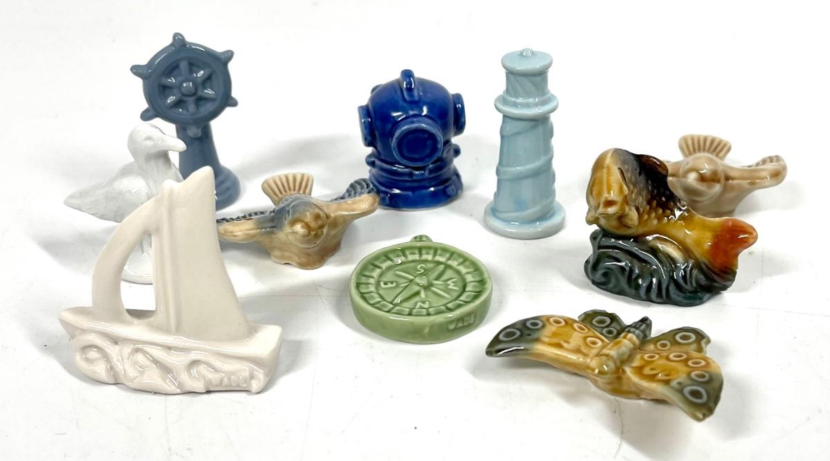 Lot of WADE & unmarked ceramic miniature figurines nautical fish, birds, lighthouse and more