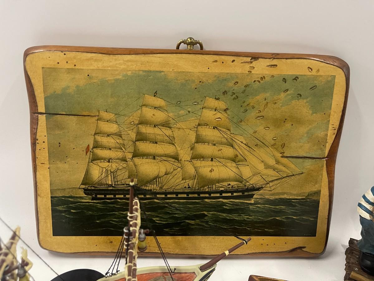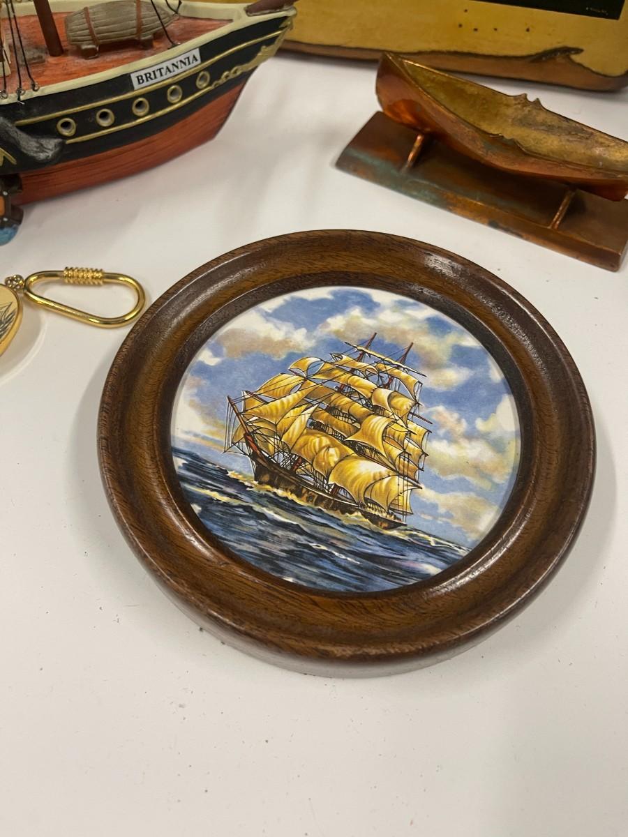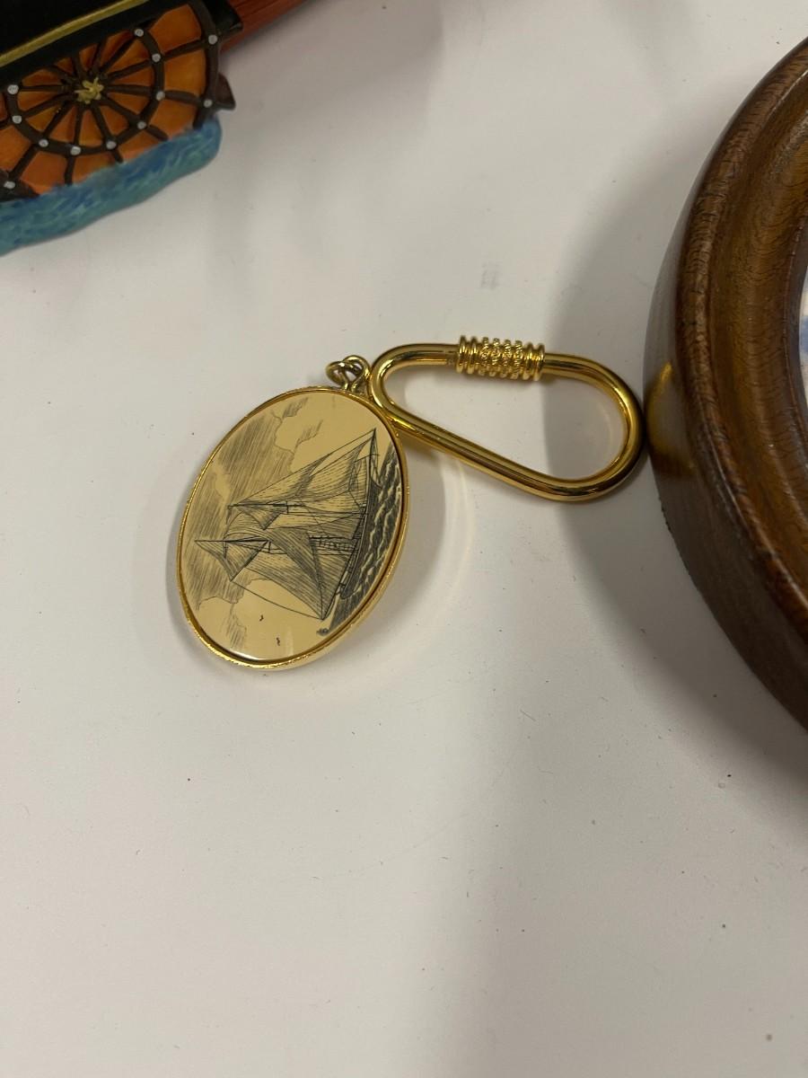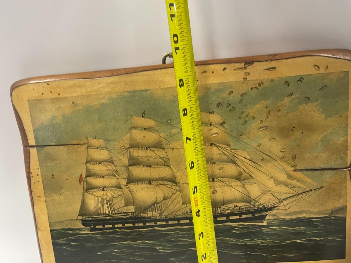 Includes: wooden ship print, round framed ship picture, Department 56 HMS Britannia ship from Dickens Village (repaired and battery cover missing but the ship does light up), metal ship, ship key chain, nautical bookend.