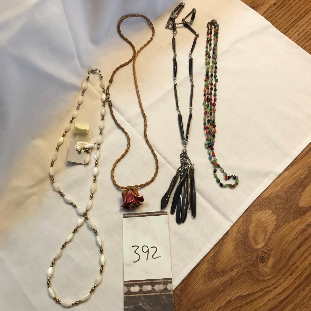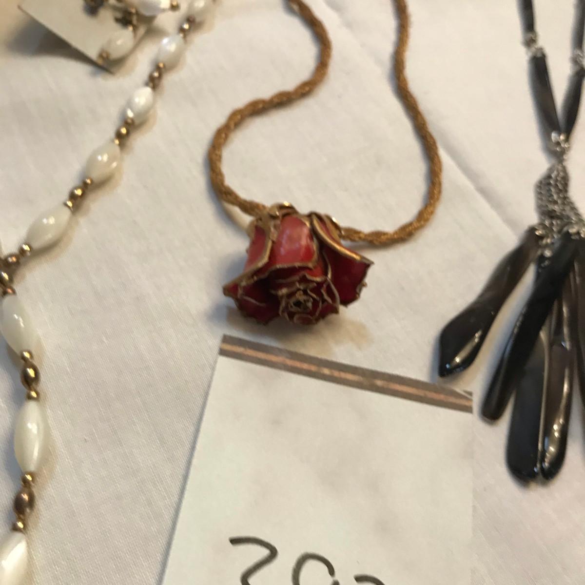 The rose pendant is a real rose! Abalone necklaces & glass bead strand