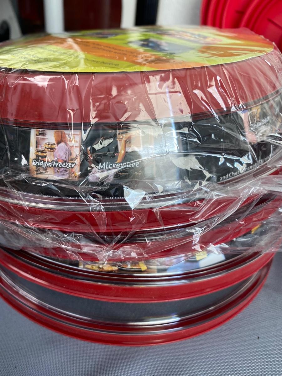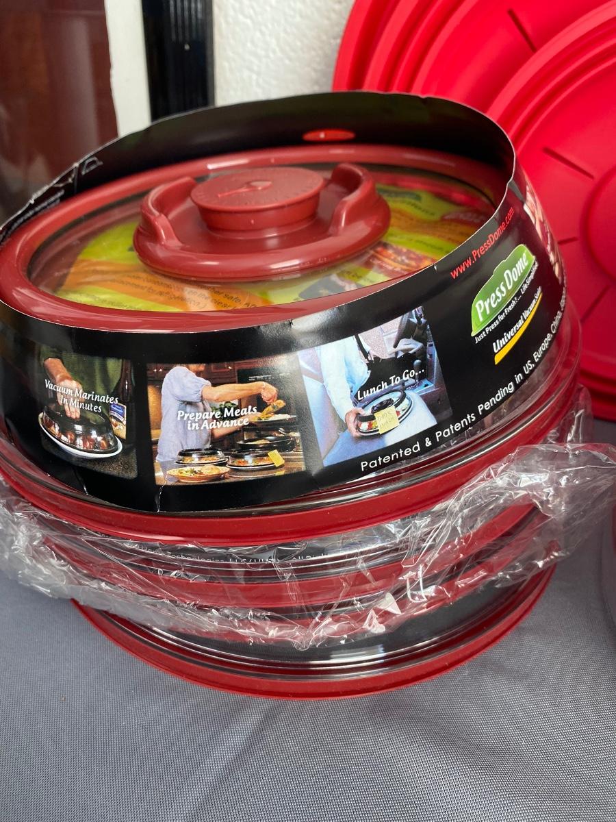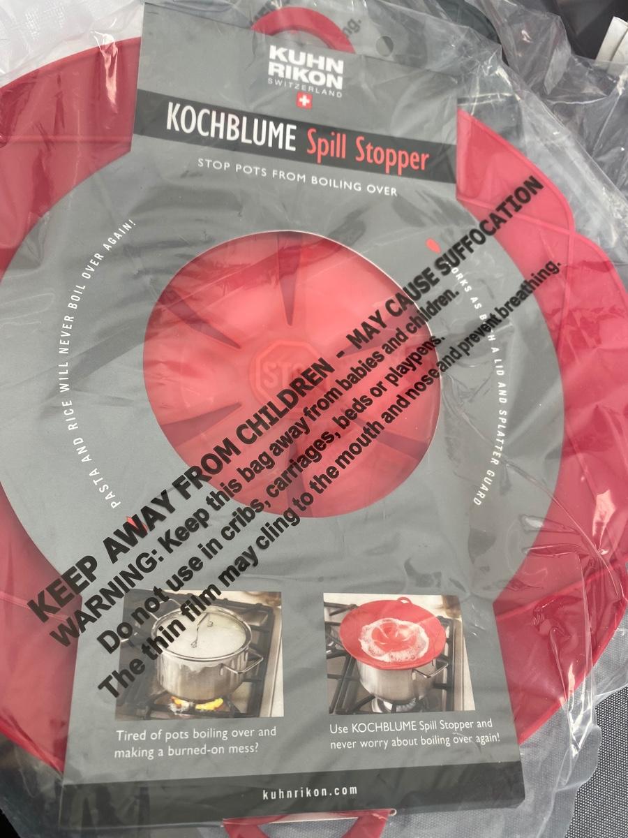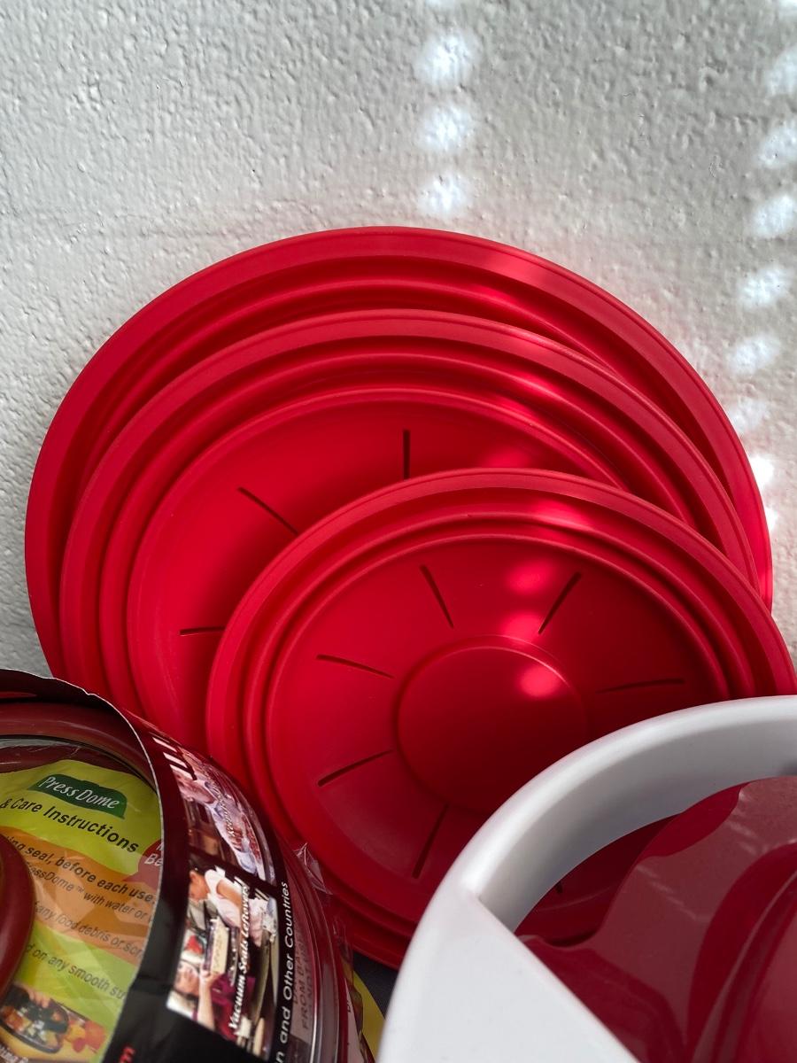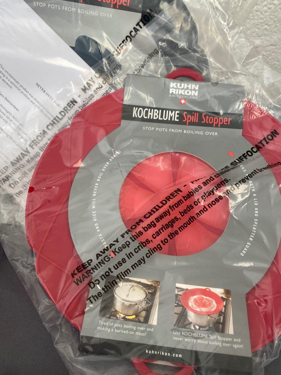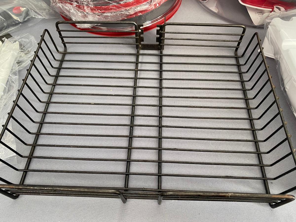 Metal Grill Basket, SilverMark Scissors, Plastic Can Opener, Black Handled Red Grater, Mandolin, Collapsible Salad Spinner, Genius Salad Cutter Kit, 4 Press Domes, 3 handled lids, & 4 Kochblume Spill Stoppers