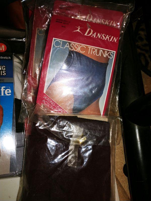 NEW - 19 pkgs Total... some are multiples- Men's - 5 pkg M, 1 pkg L. Women's Trunks are mostly wine (purple). 13 pkg - 4S, 4M, 5L.