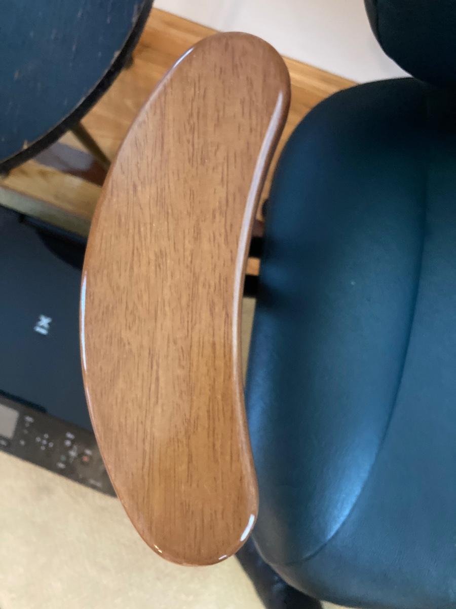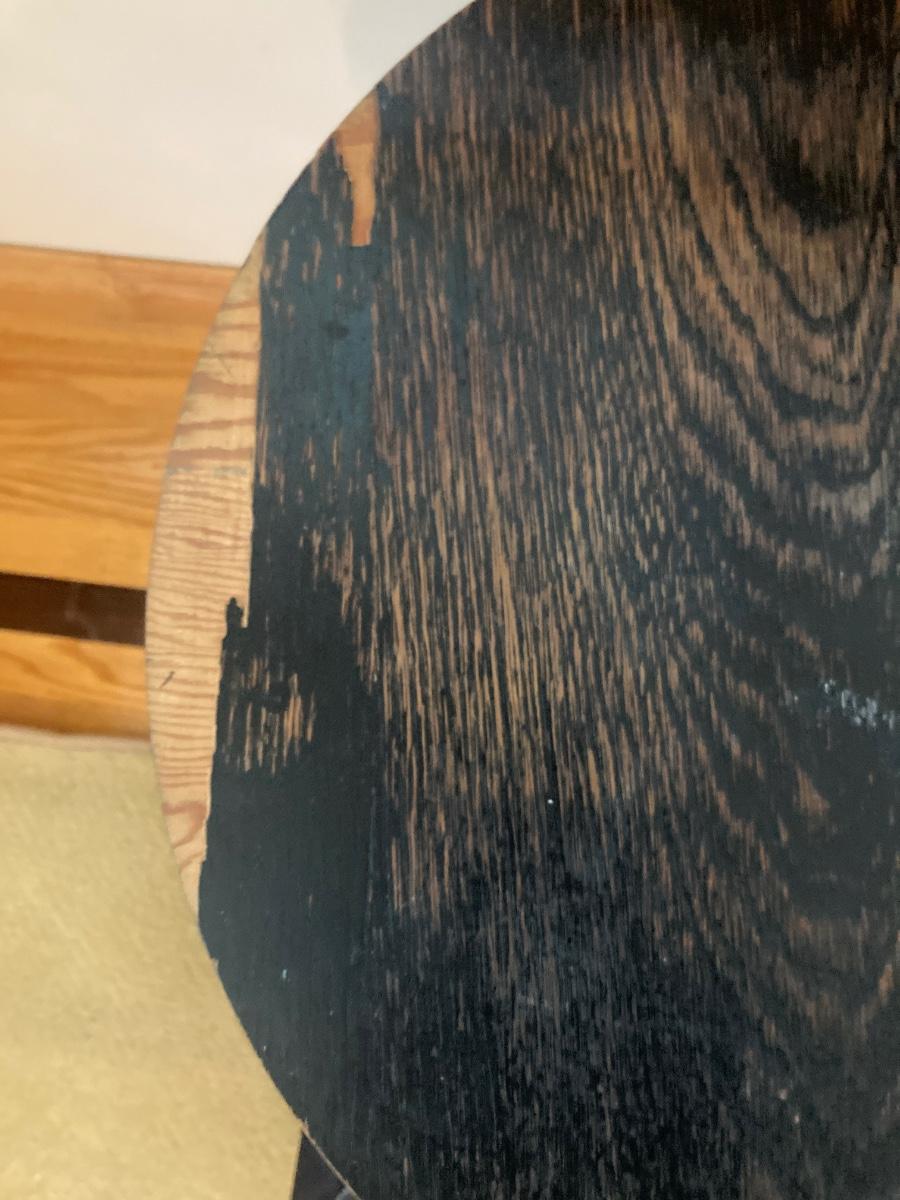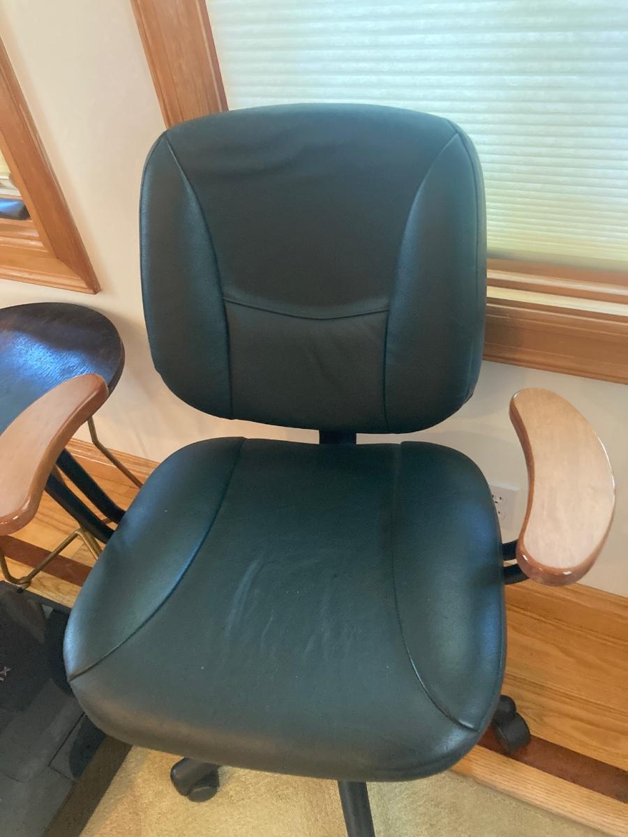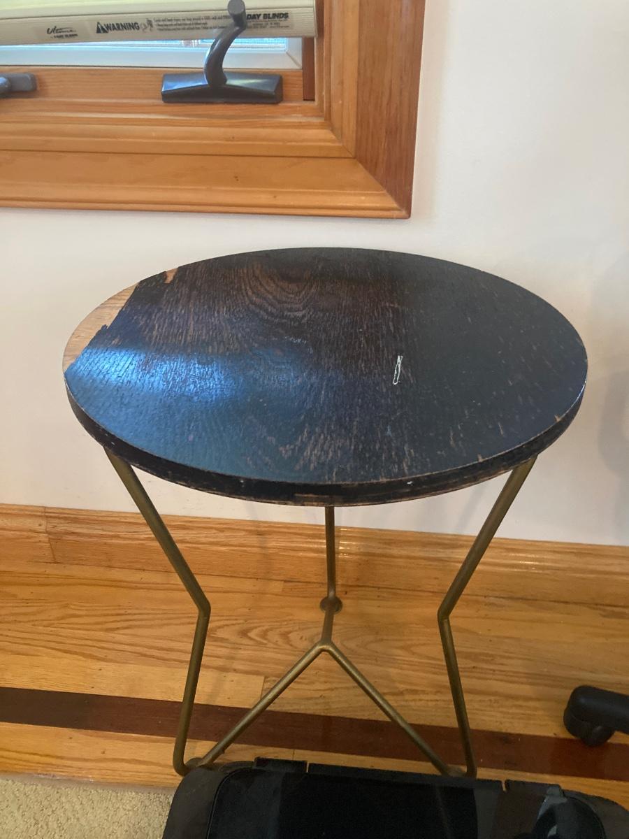 Canon MG5420 printer (untested), desk chair with wood armrest, and round mid-century, wood-top table (see photo for damage).