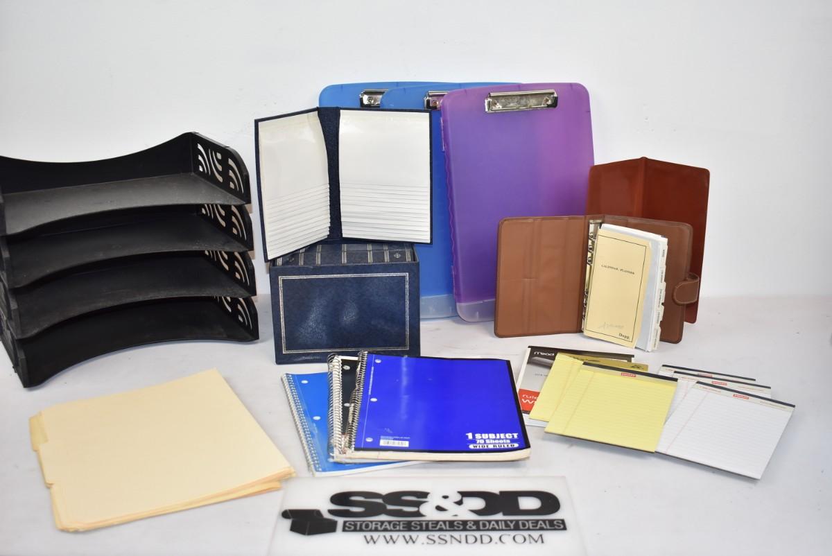 Lot of Office Supplies: Clipboards, Planner, Writing Tablets, Notebooks, Files, Photo Albums