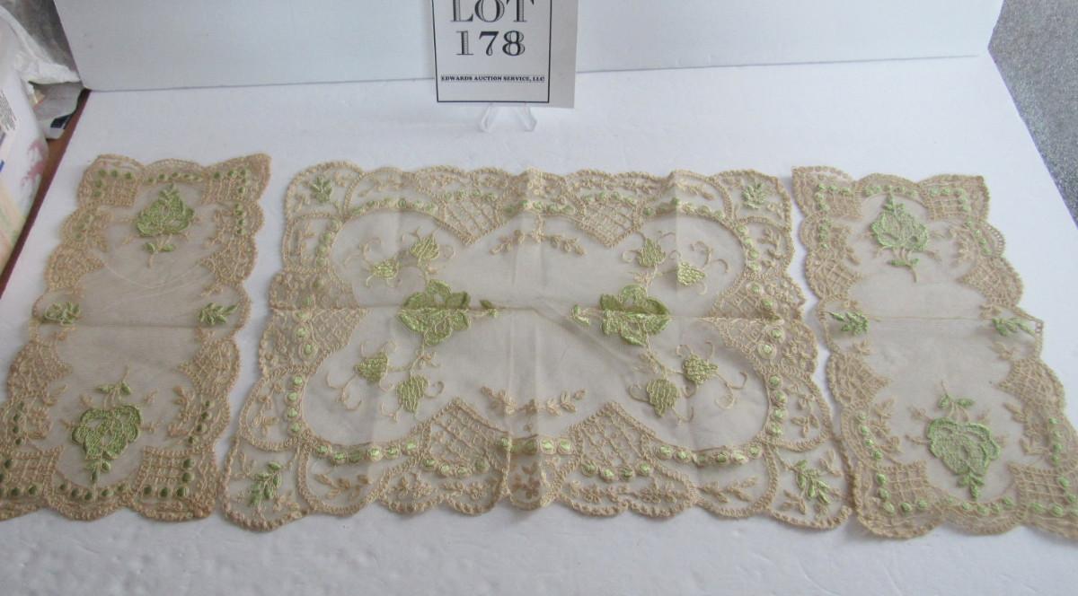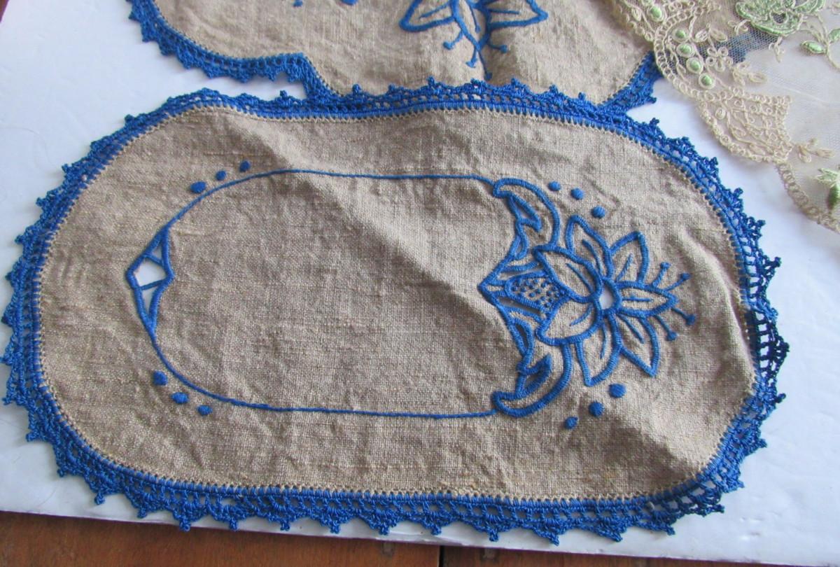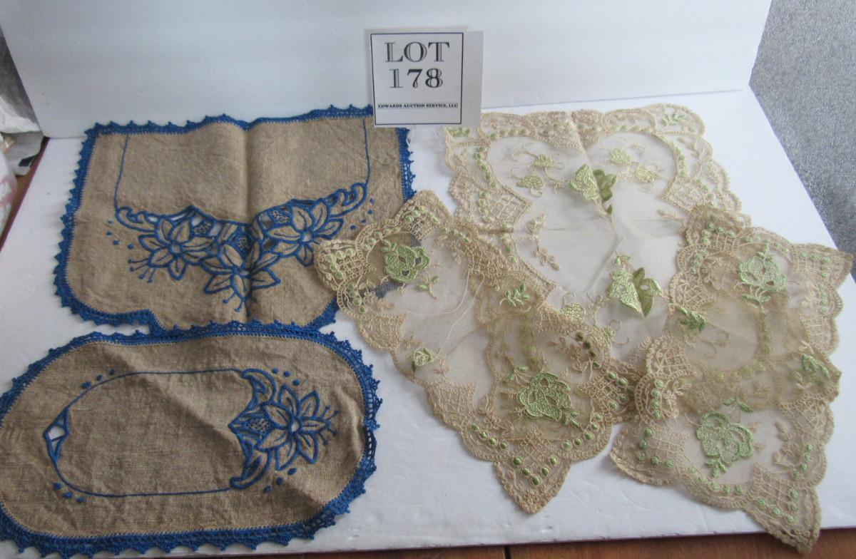 Lot of Old Fancywork, Pretty Matched Set of 3 and 2 Others