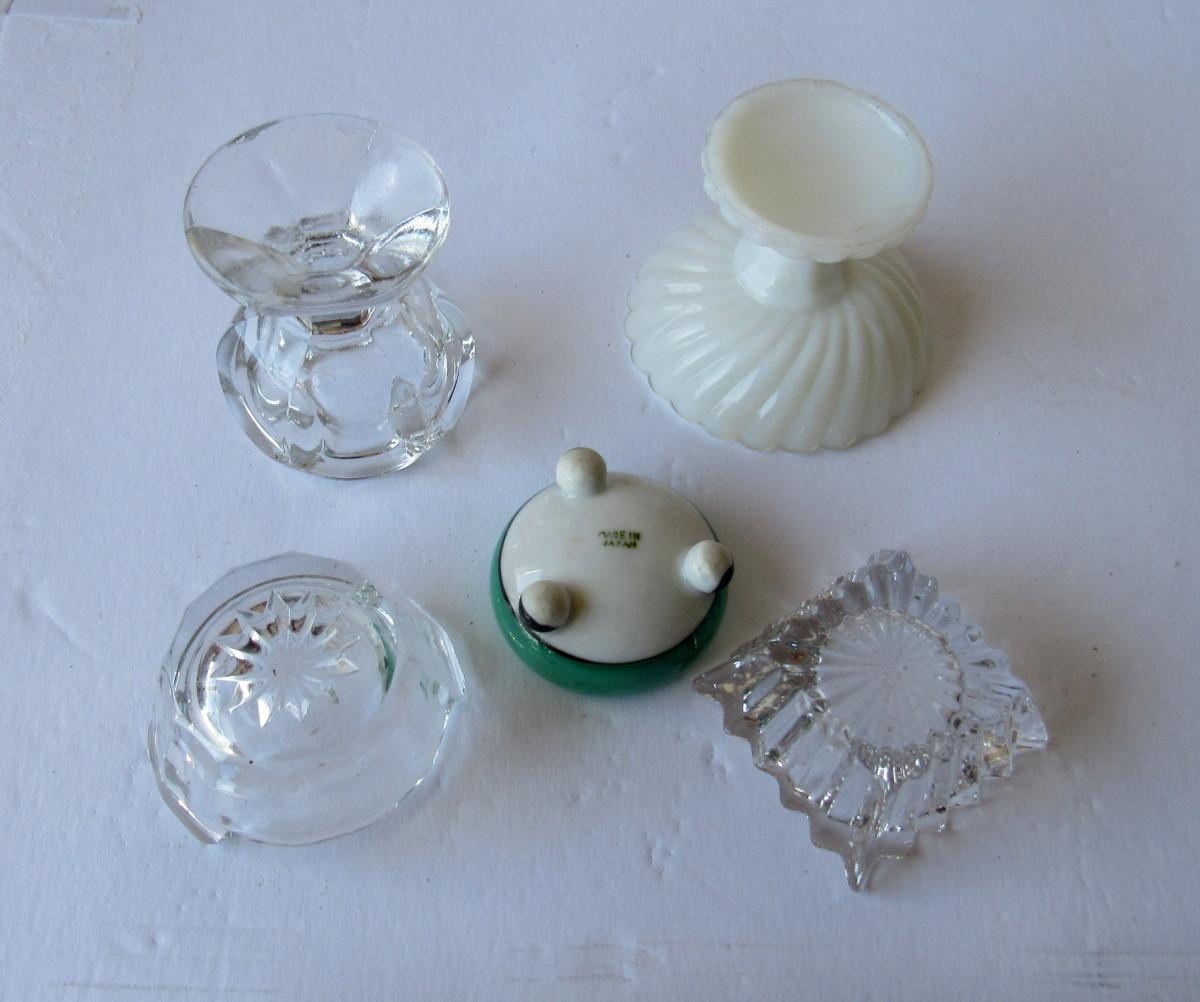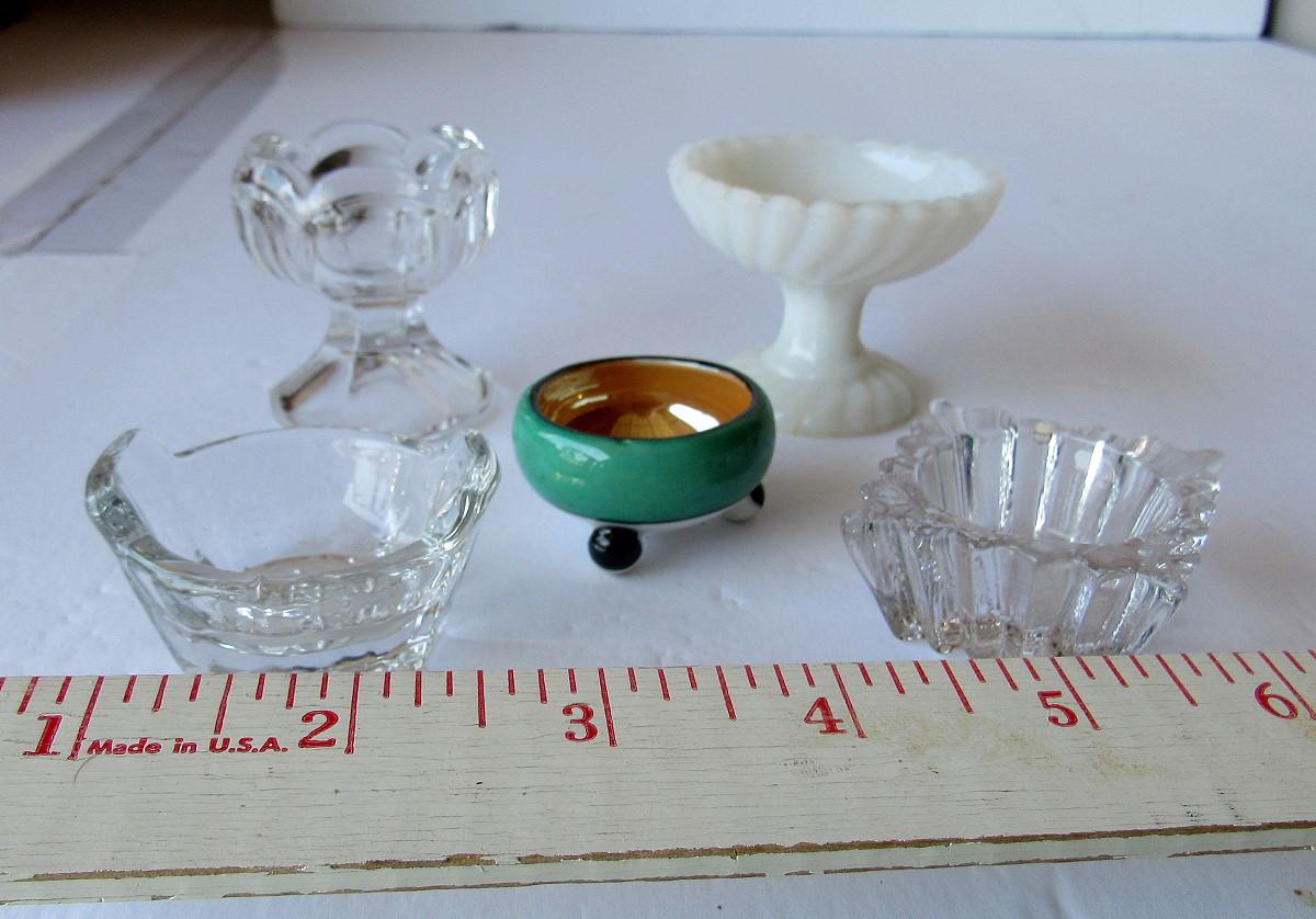 Lot of Old Glass and Lusterware Salt Dips