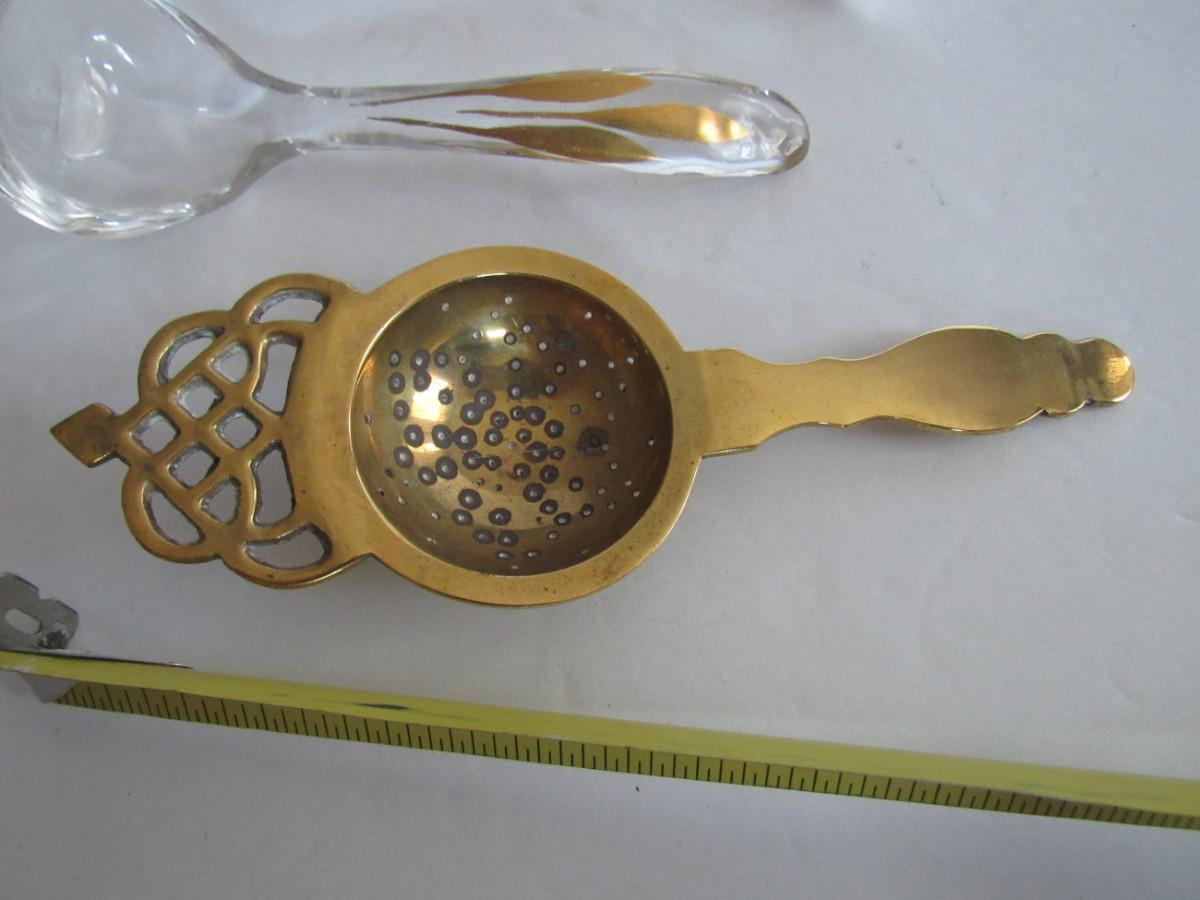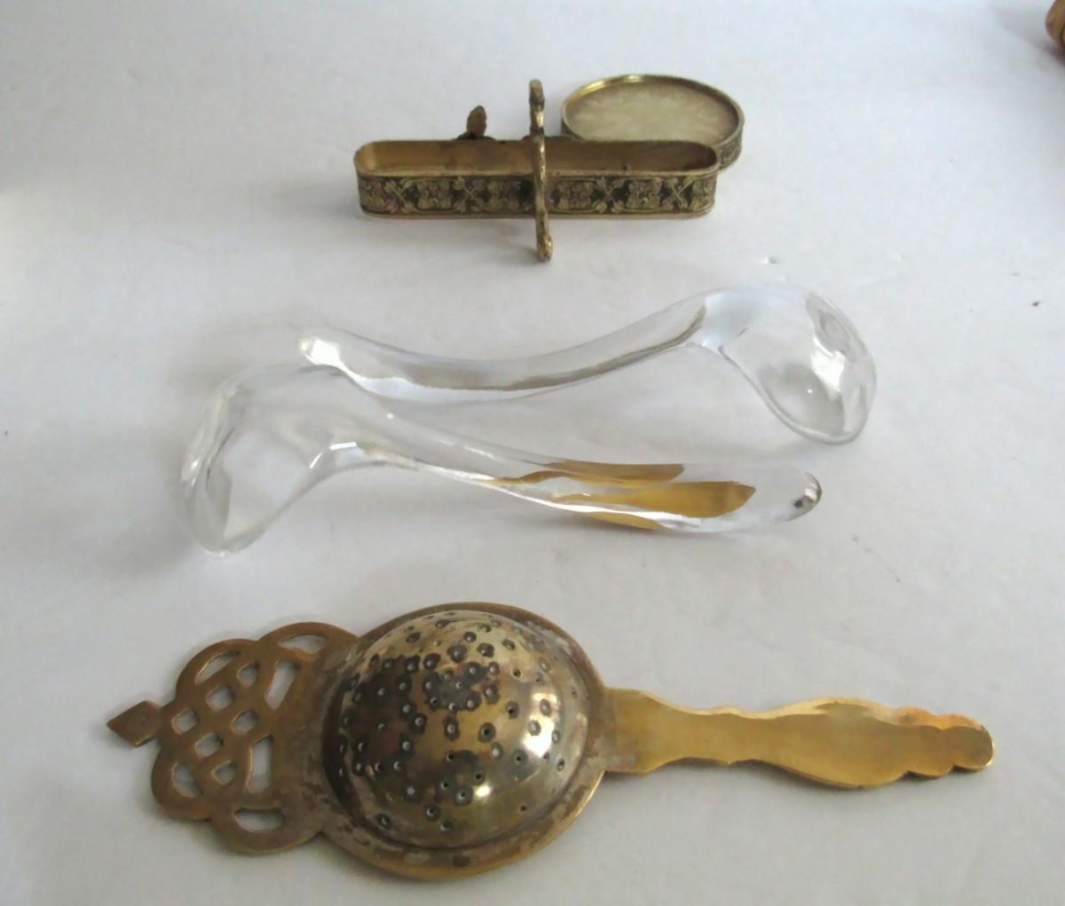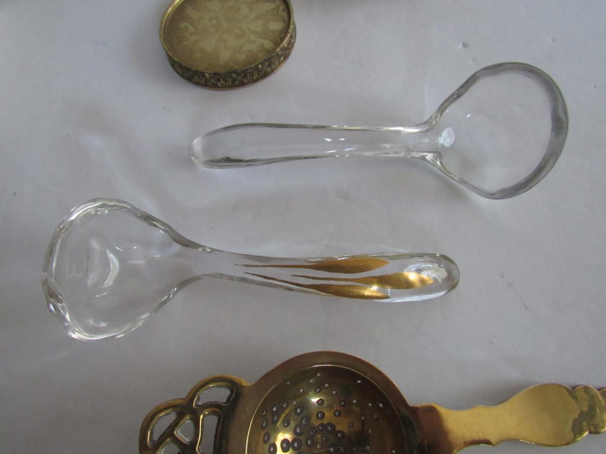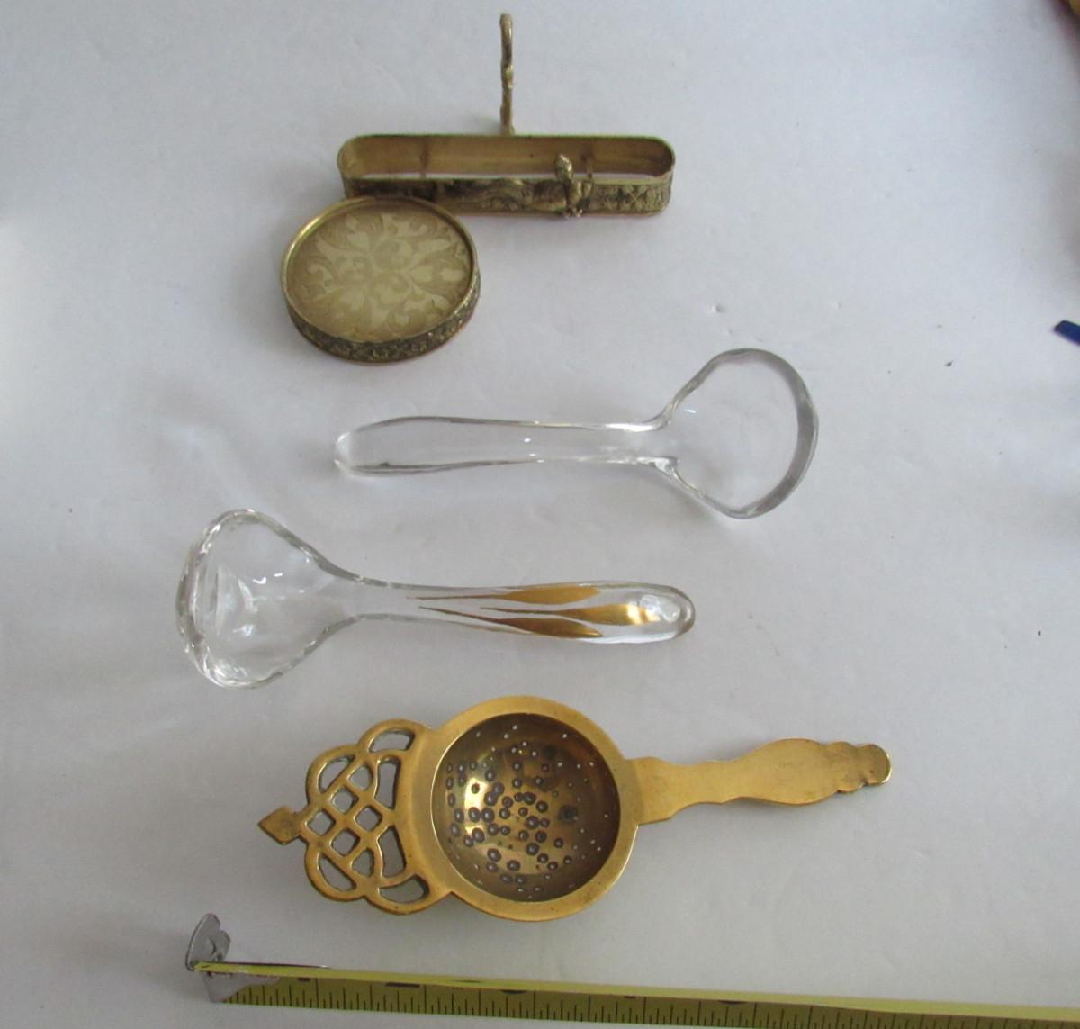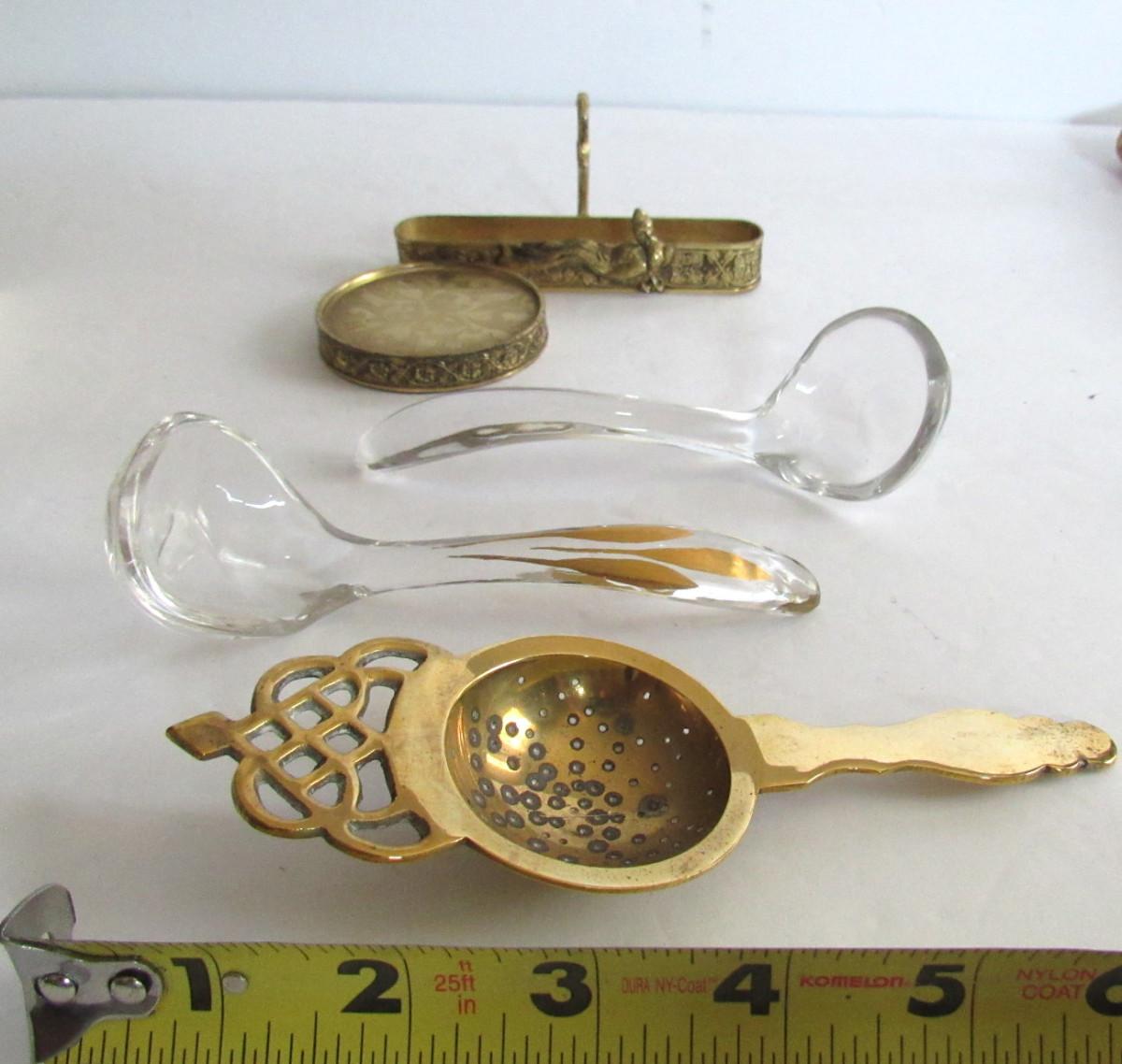 Lot of Old Glass Ladles, Tea Strainer, Cup/Saucer Holder