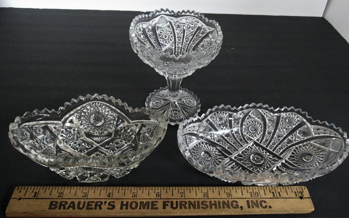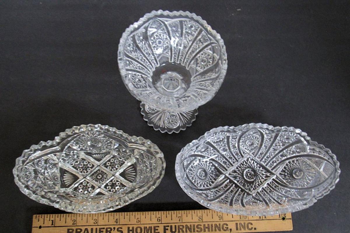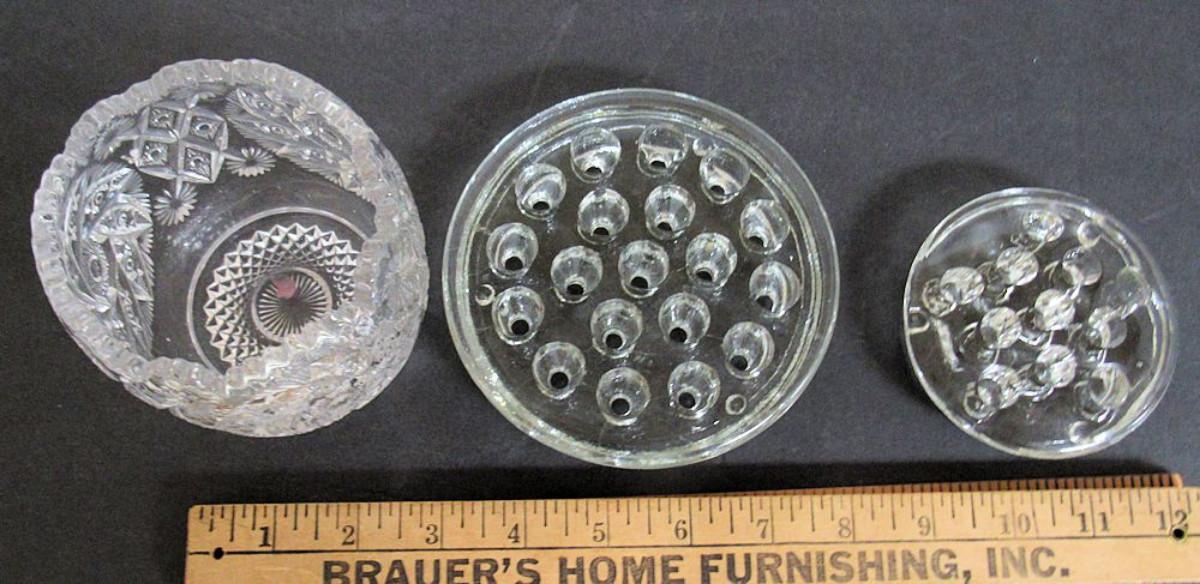 Lot of Old Pressed Glass Dishes and Flower Frogs
