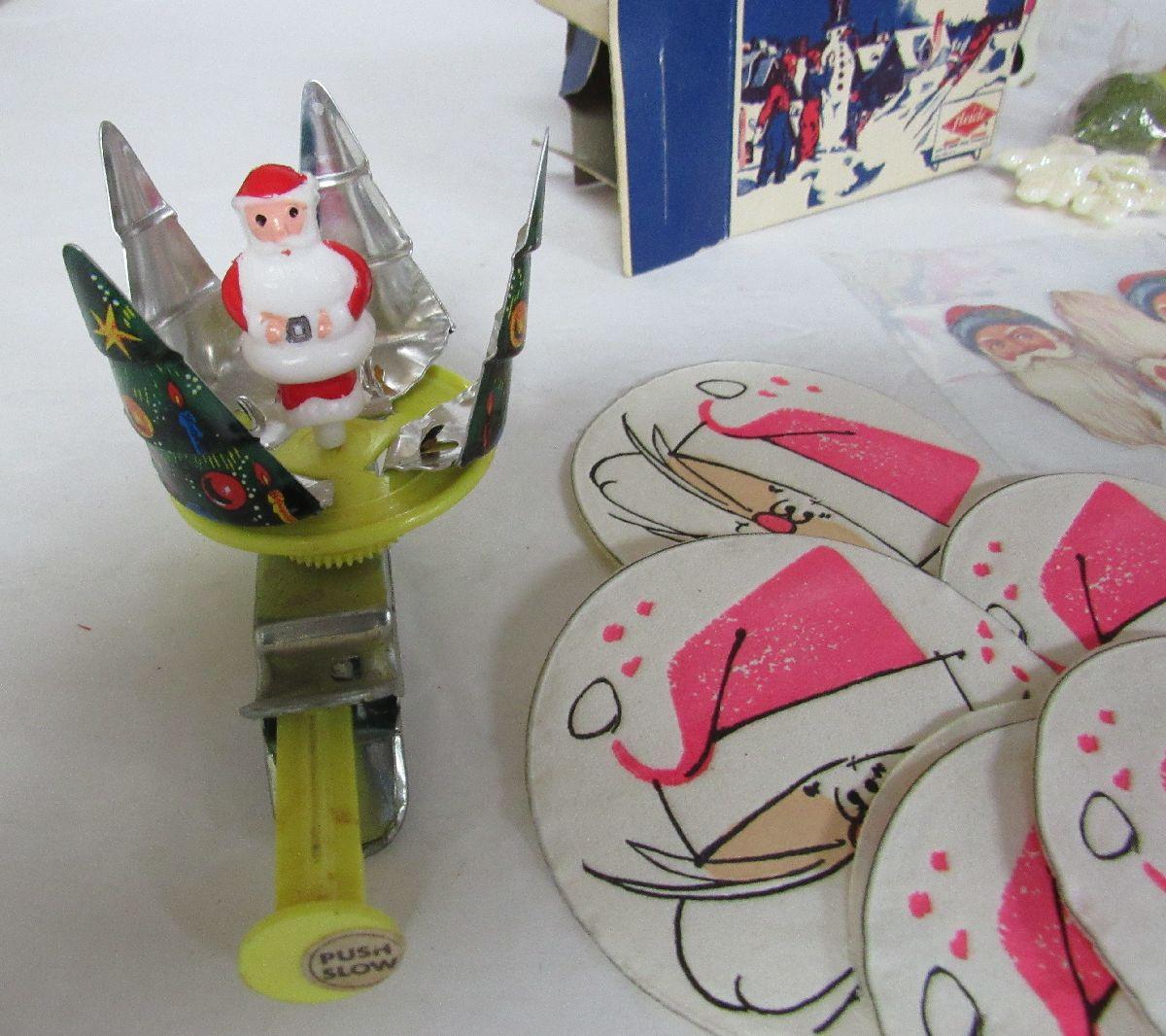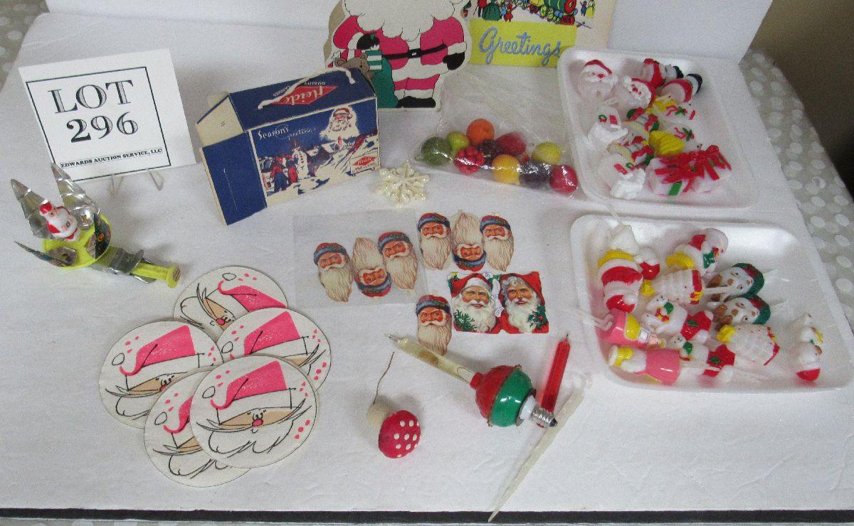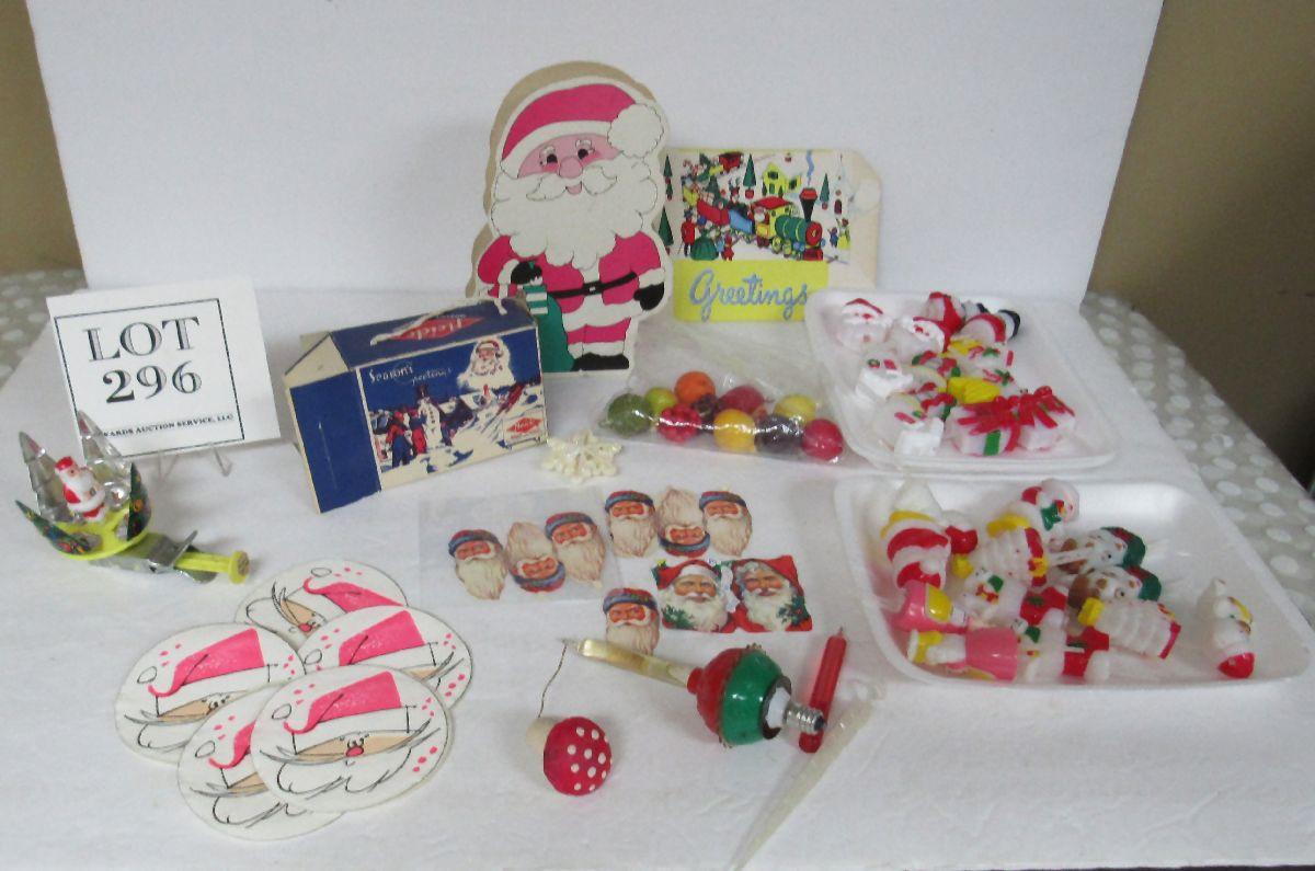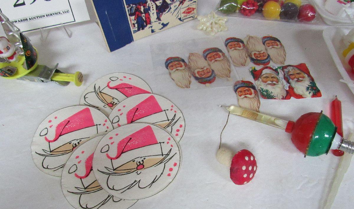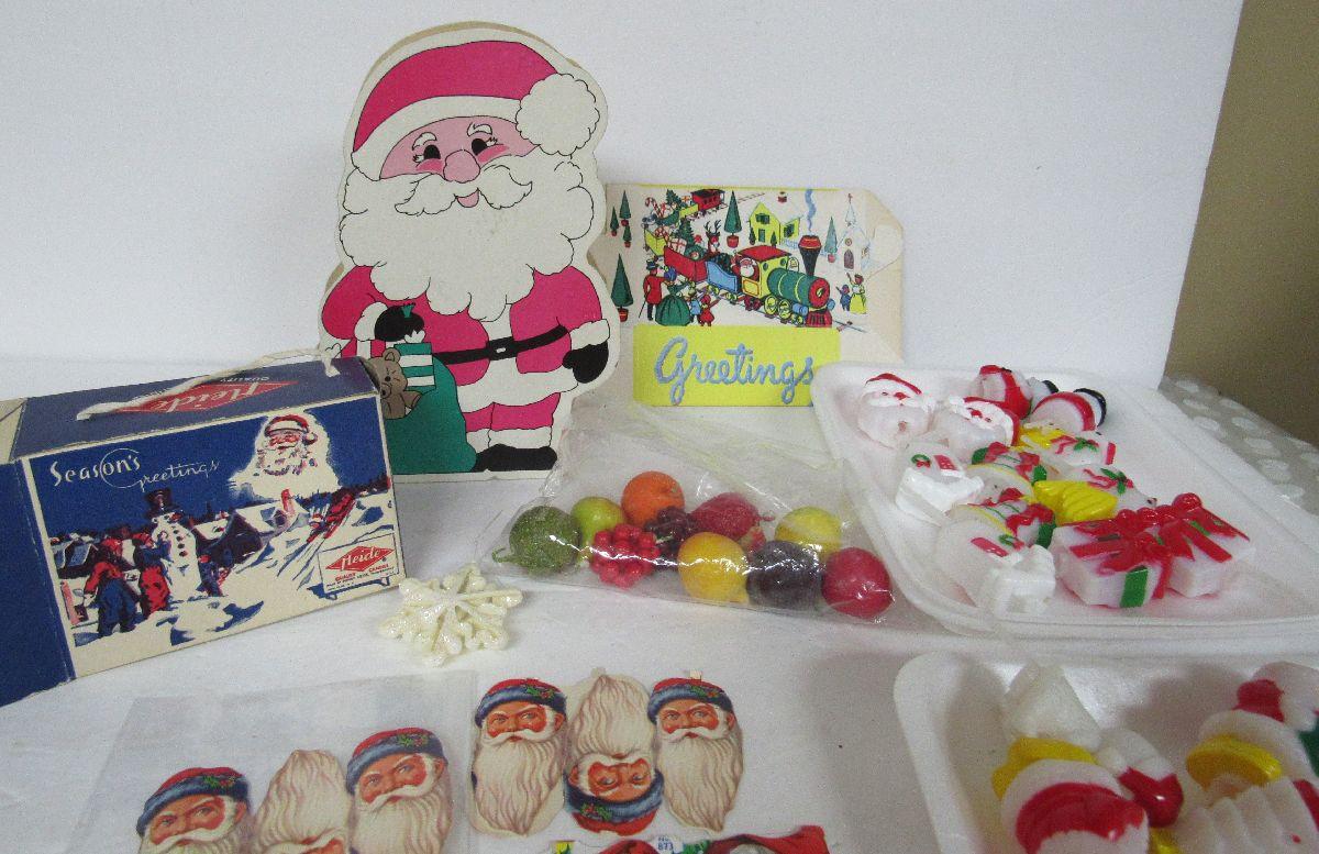 Lot of Older Christmas Decor, Candy Boxes, Santa Scraps, More