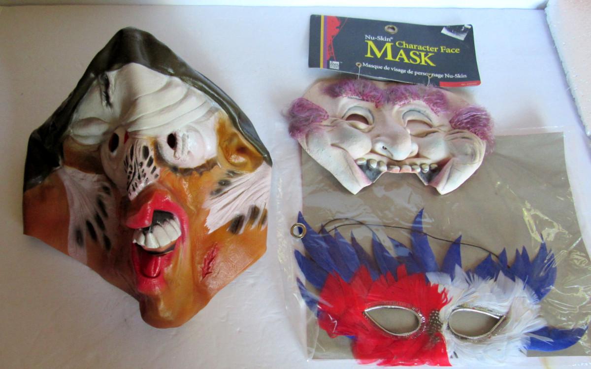 The ghoul one is starting to get a little hard and stiff. The other two were never used. Shipping is available at actual shipping cost plus $5.00 handling fee per box for supplies/labor. See our terms for details. All sales are final. Condition notes may not be all inclusive, we may miss some issues as most vintage items are not in mint condition and have some degree of wear, paint loss, etc, but we always try to note obvious damage.