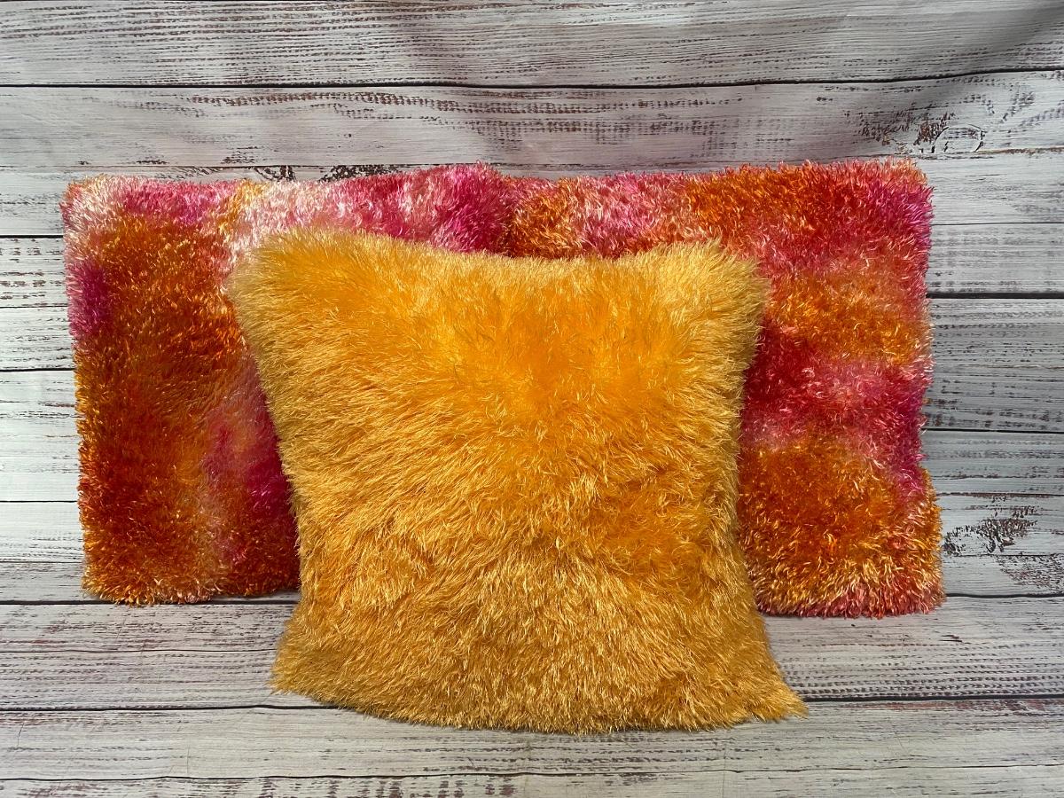 Lot of Orange Colored Fuzzy Furry Pillows
