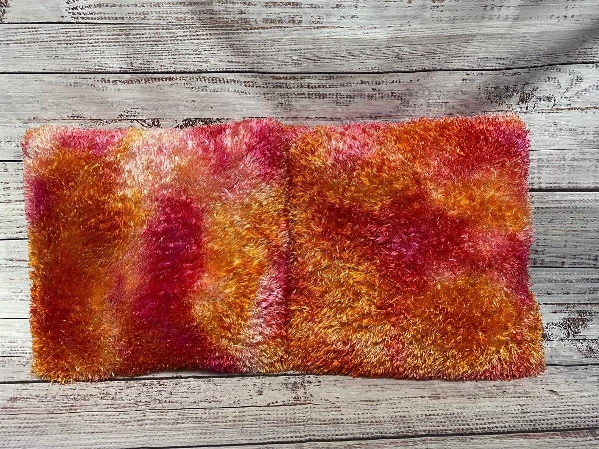 Lot of Orange Colored Fuzzy Furry Pillows, there are no significant rips or tears to the pillows and is in good useable condition. Check pictures for more details and for sizing.