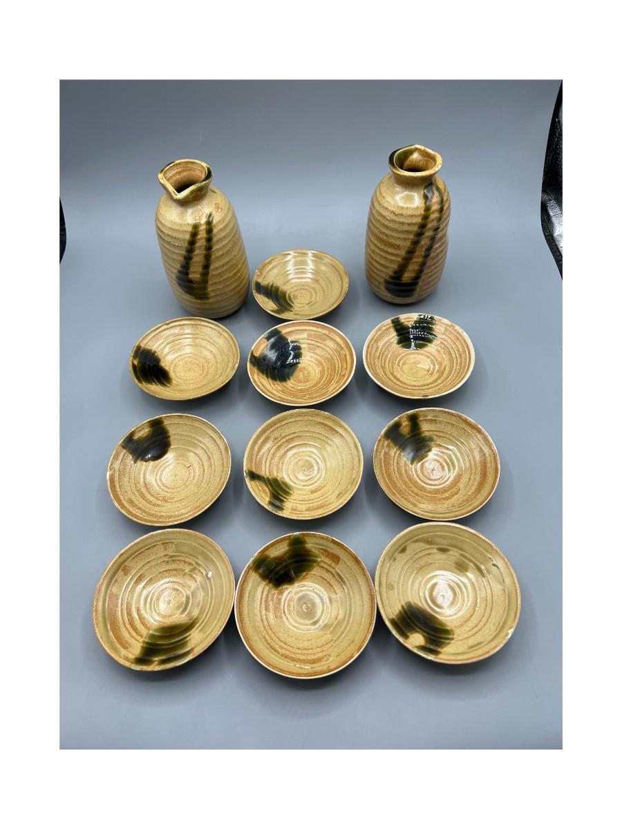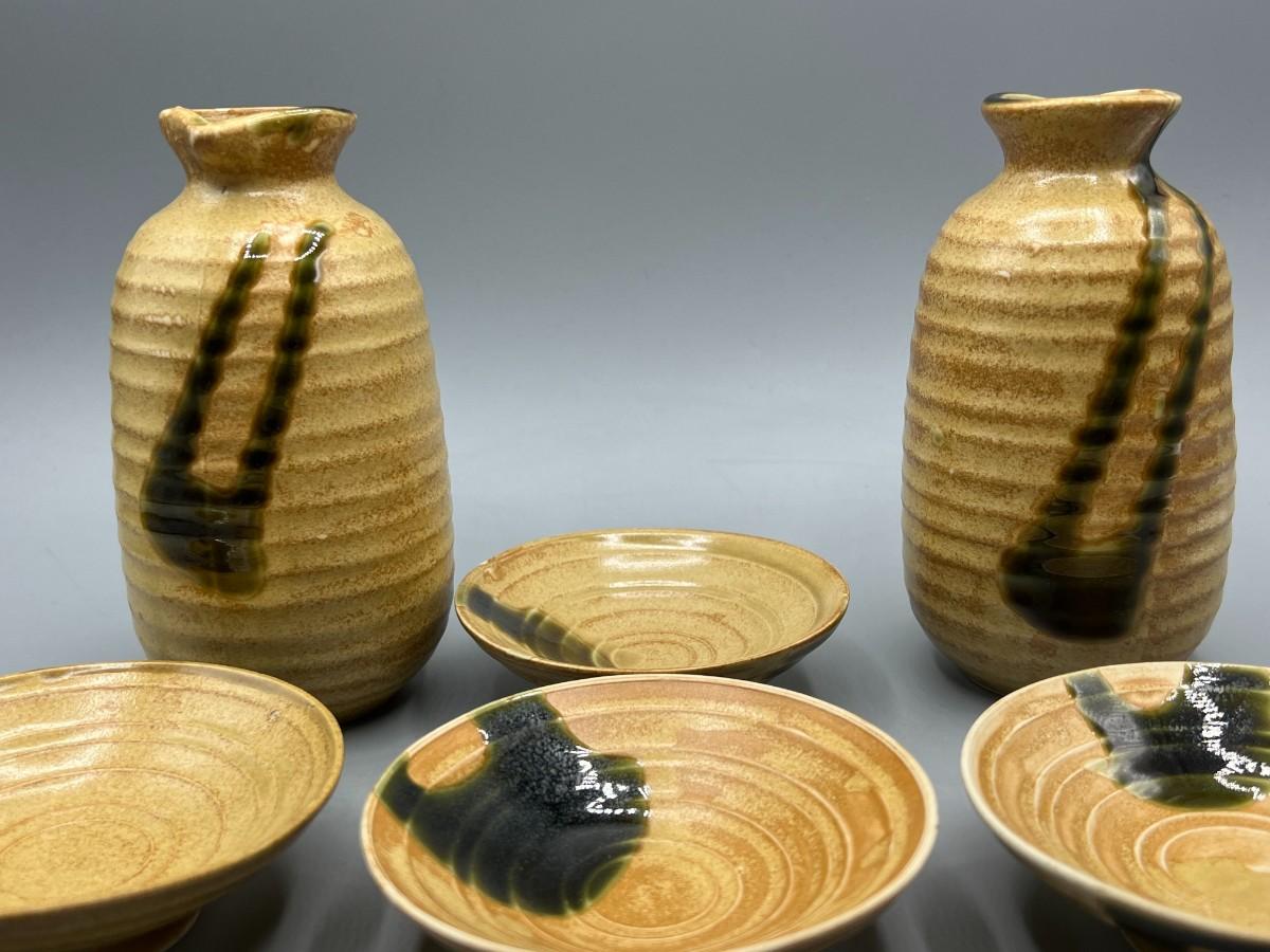 Lot of Oriental Style Ceramic Sake Drinking Pitcher & Dishes
