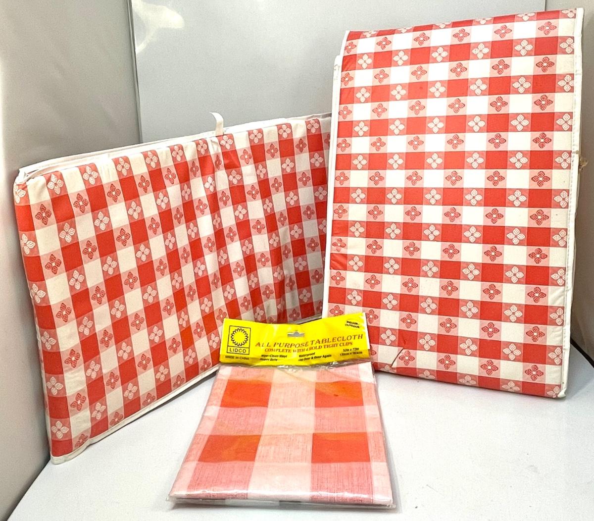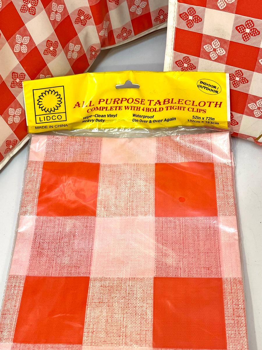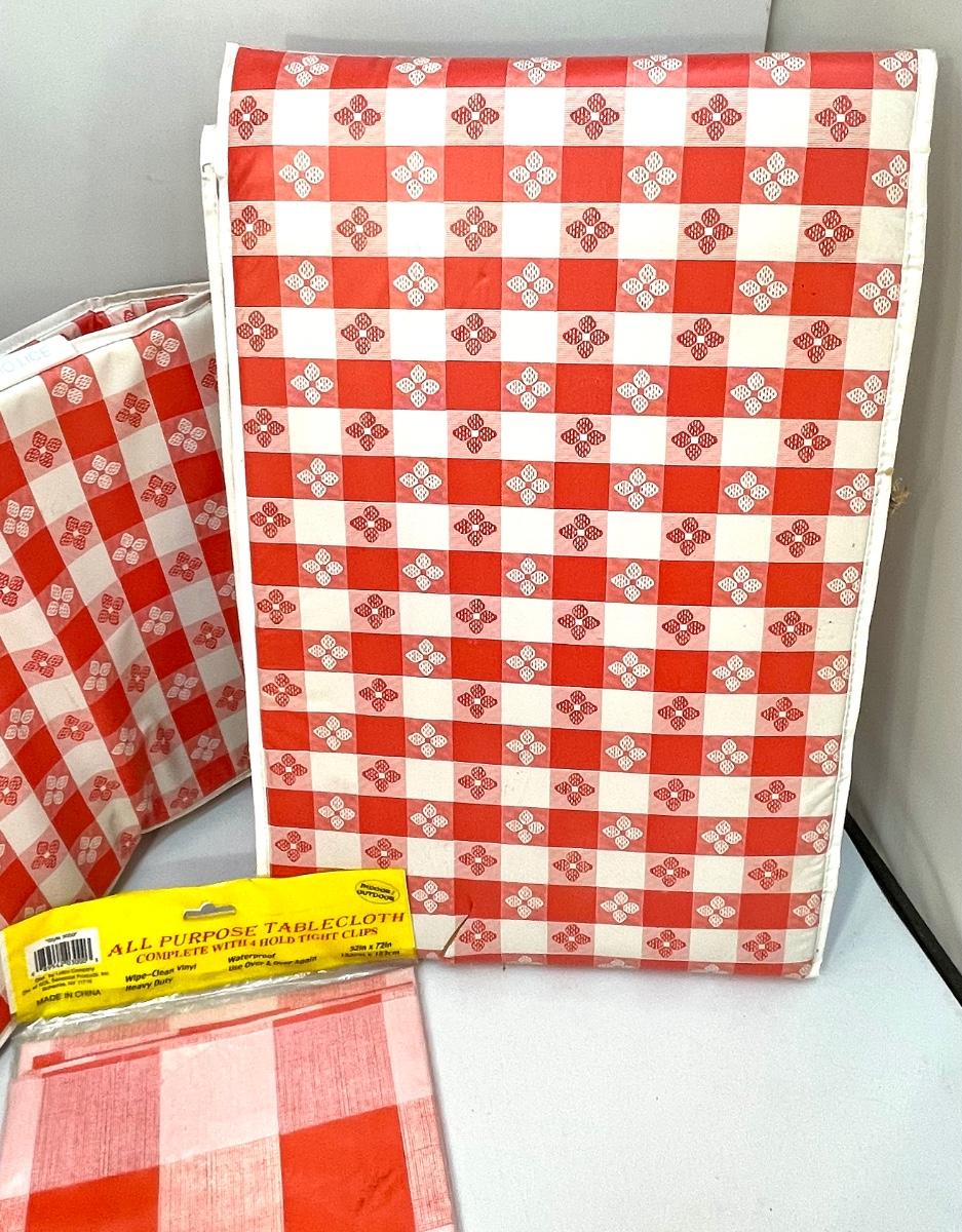 Lot of outdoor picnic table seat covers and tablecloth new red and white checkered pattern