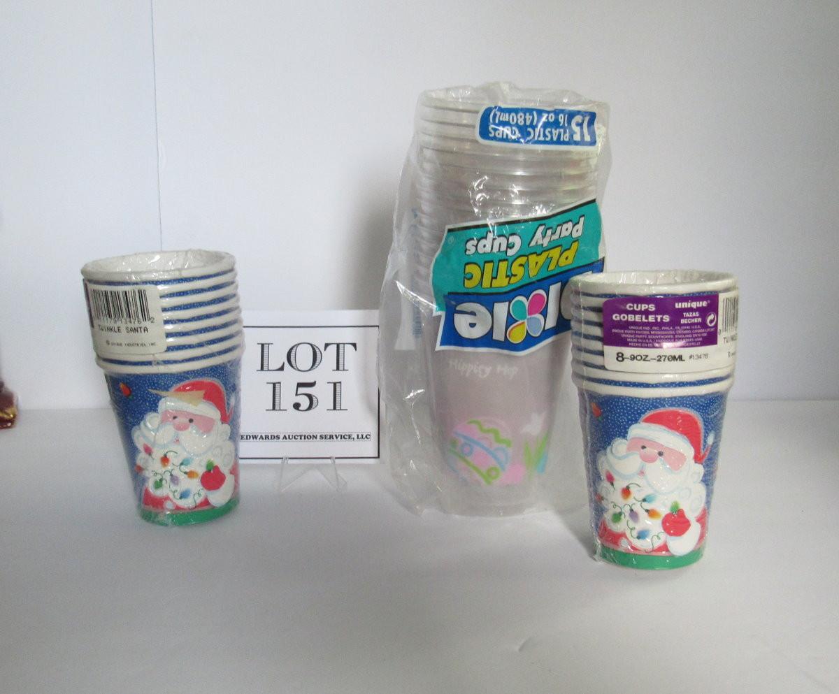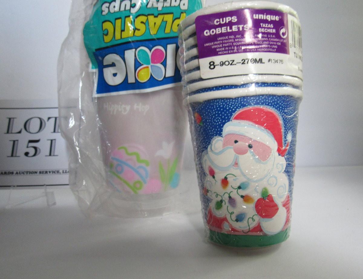 Lot of Paper and Plastic Holiday Cups, Christmas and Easter