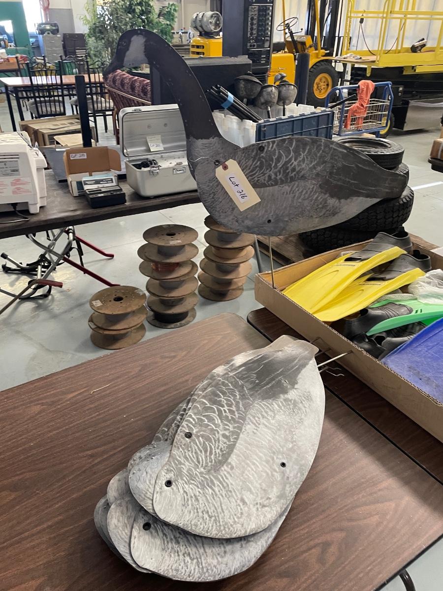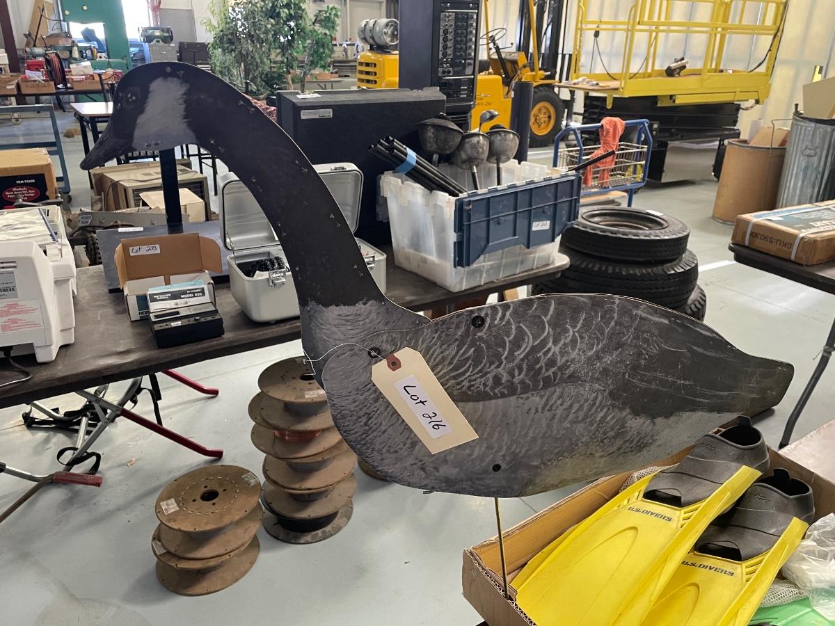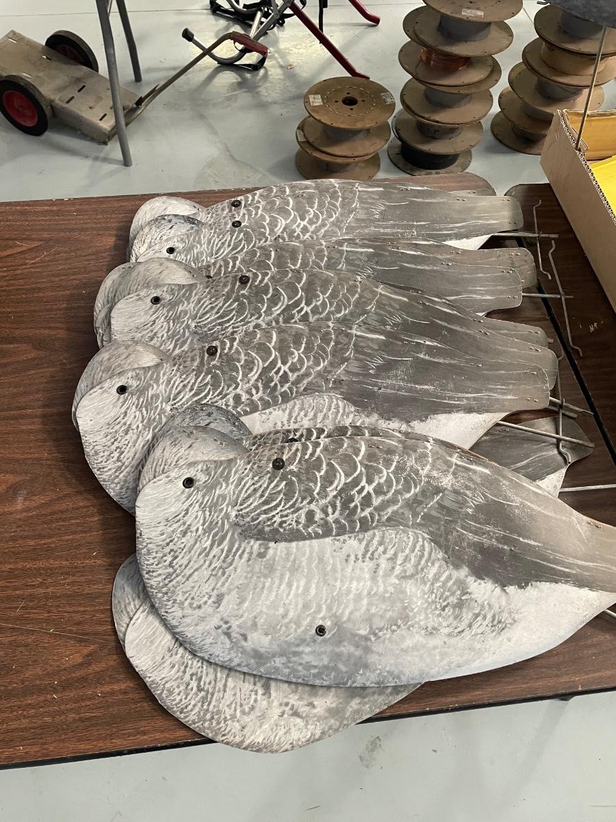 Lot of Paper Duck Decoys on Metal Stands