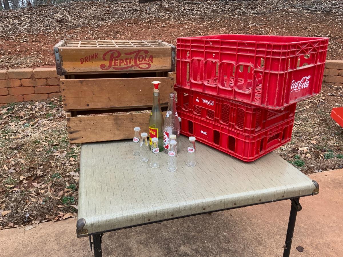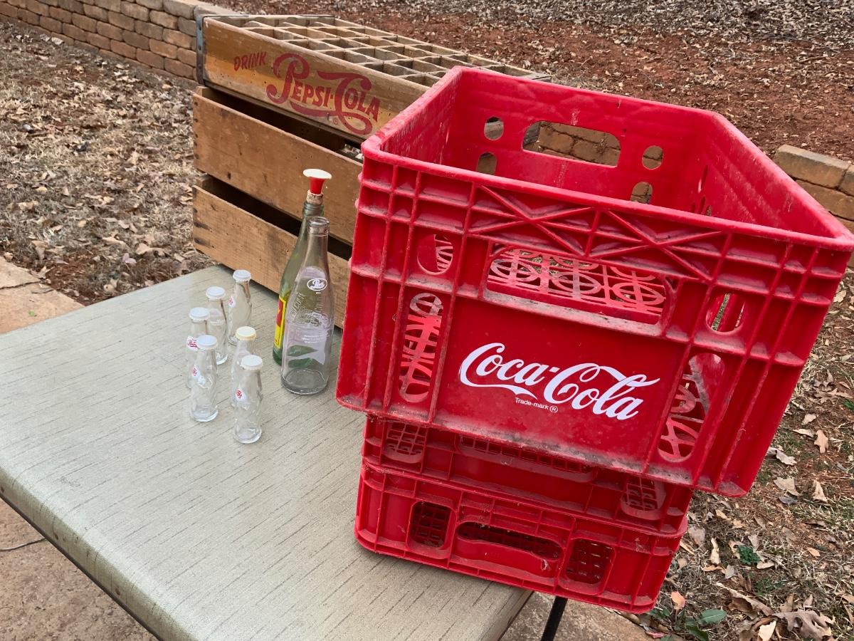 Lot of Pepsi and Coke Crates and Bottles