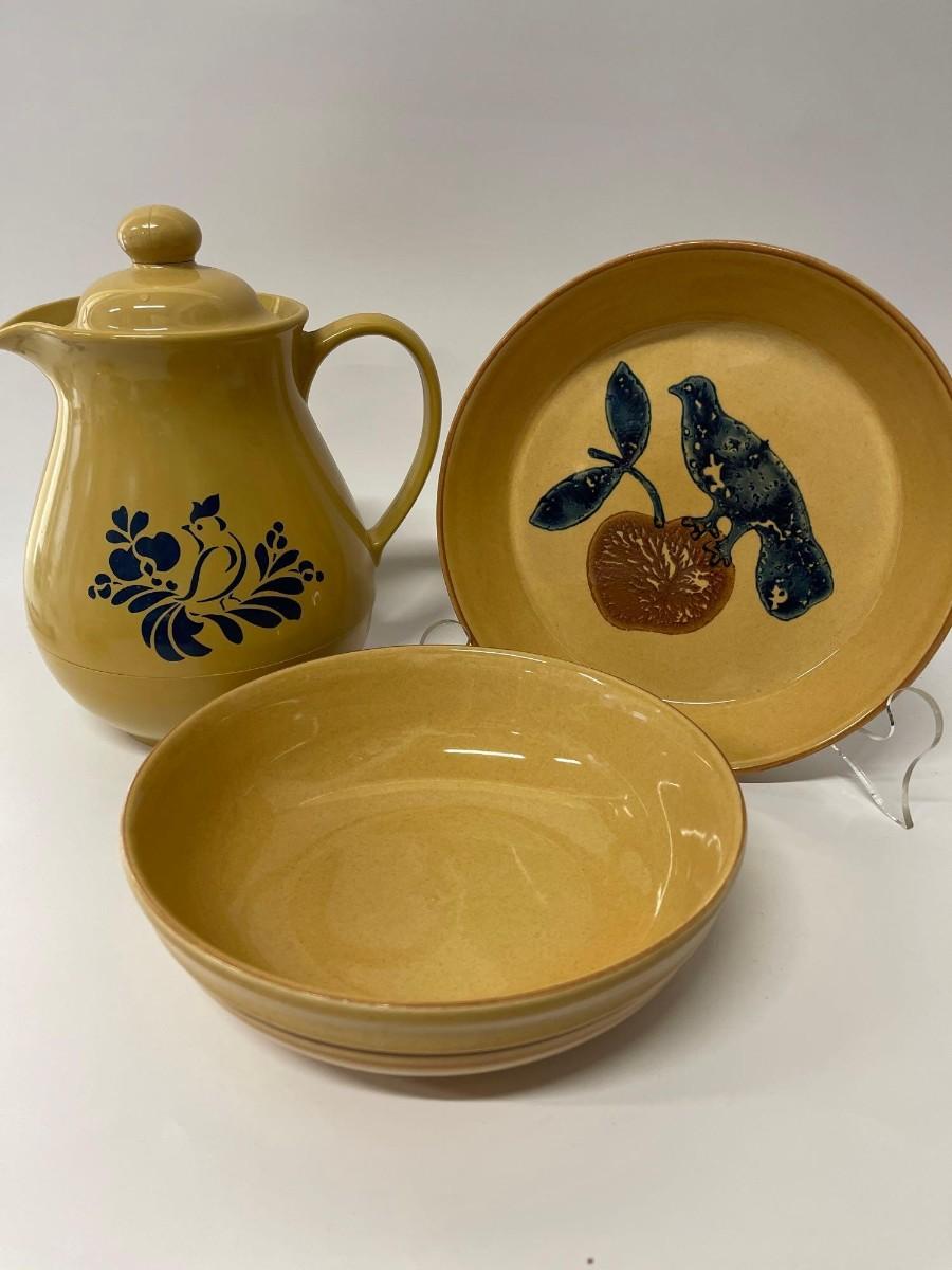 Lot of Pfaltzgraff Kitchenware. Includes a melamine carafe, 8 1/2” vegetable bowl and a pie dish.