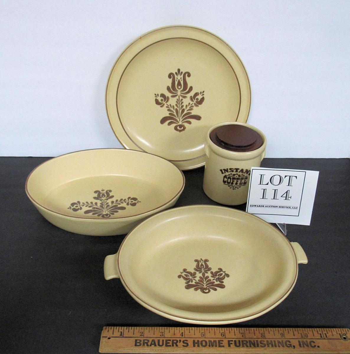 Round tray, 2 oval dishes and tea canister. All appear to be in good shape. Will ship but will be very expensive, very heavy. Email if you want shipping.