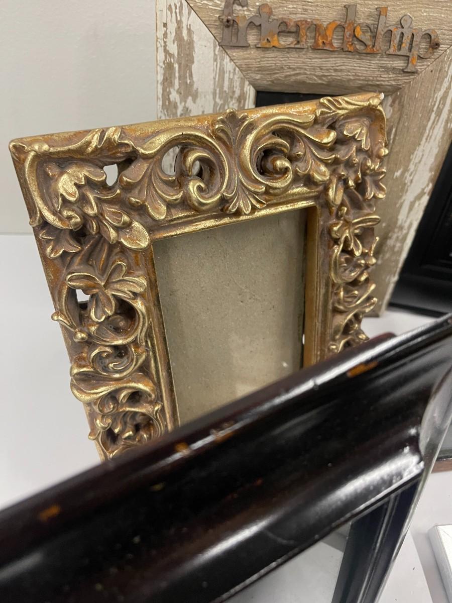 Lot of assorted picture frames from 4 x 6 to 5 x 7. All in good condition, some have minor scratches.
