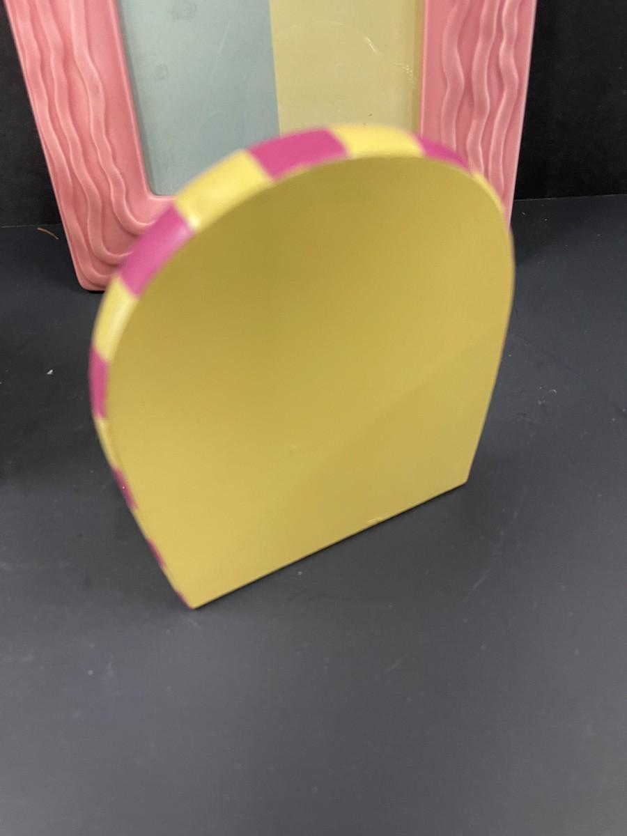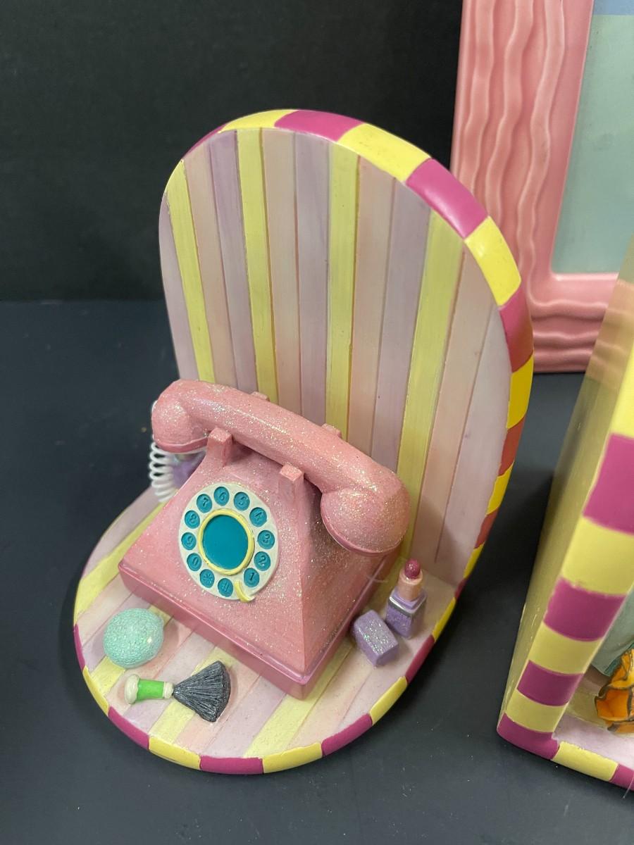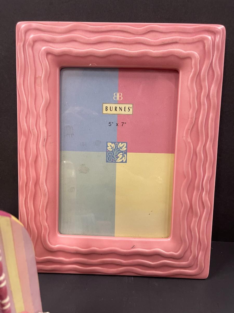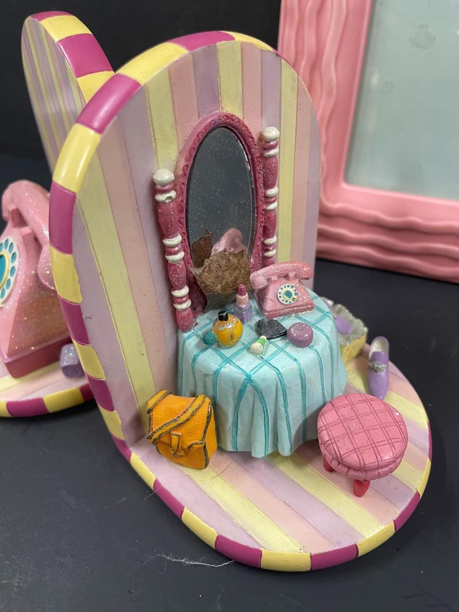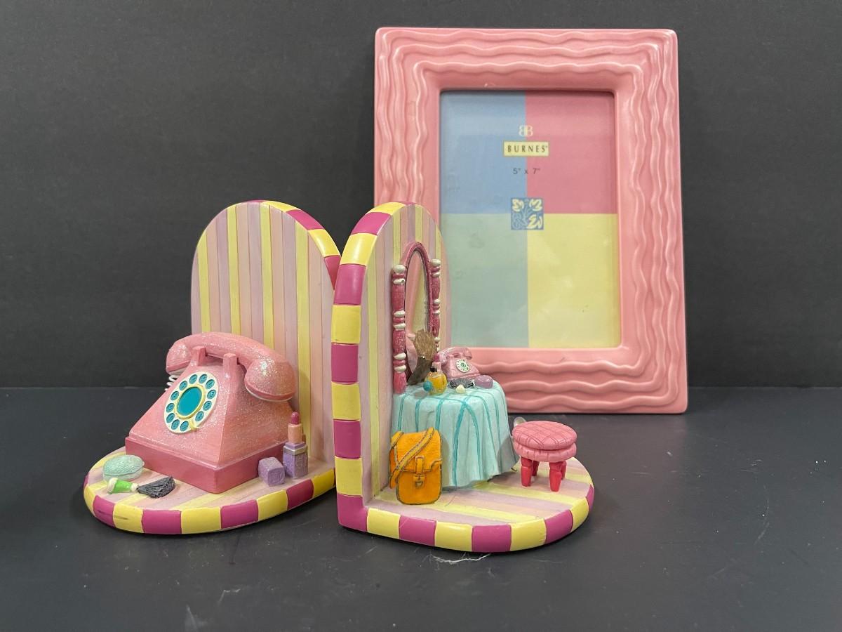 Lot of Pink Ceramic Frame with Coordinating Book Ends
