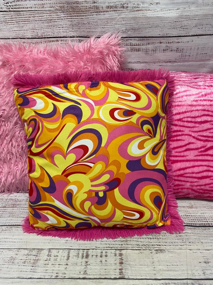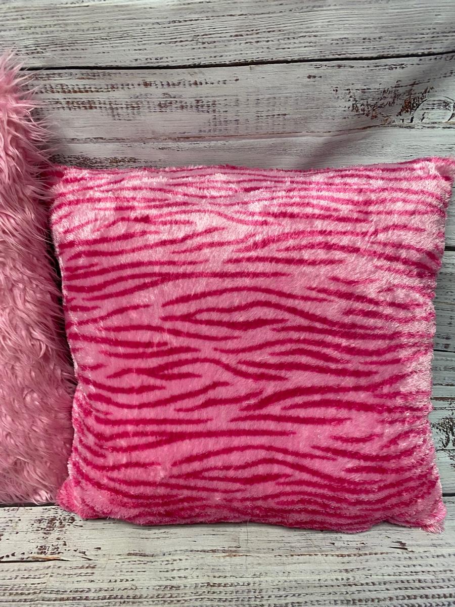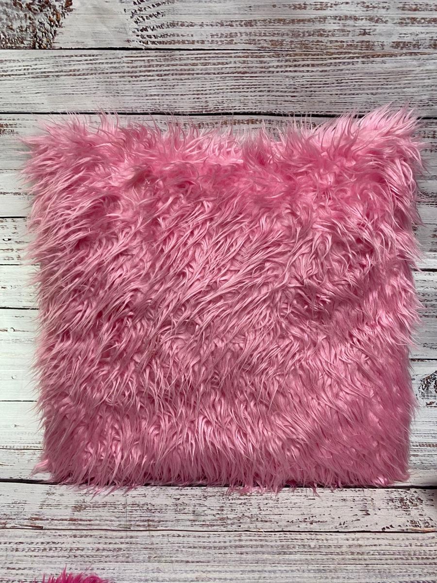 Lot of Pink Furry Fuzzy Pillows, there are no significant rips or tears to the pillows and is in good useable condition. Check pictures for more details and for sizing.