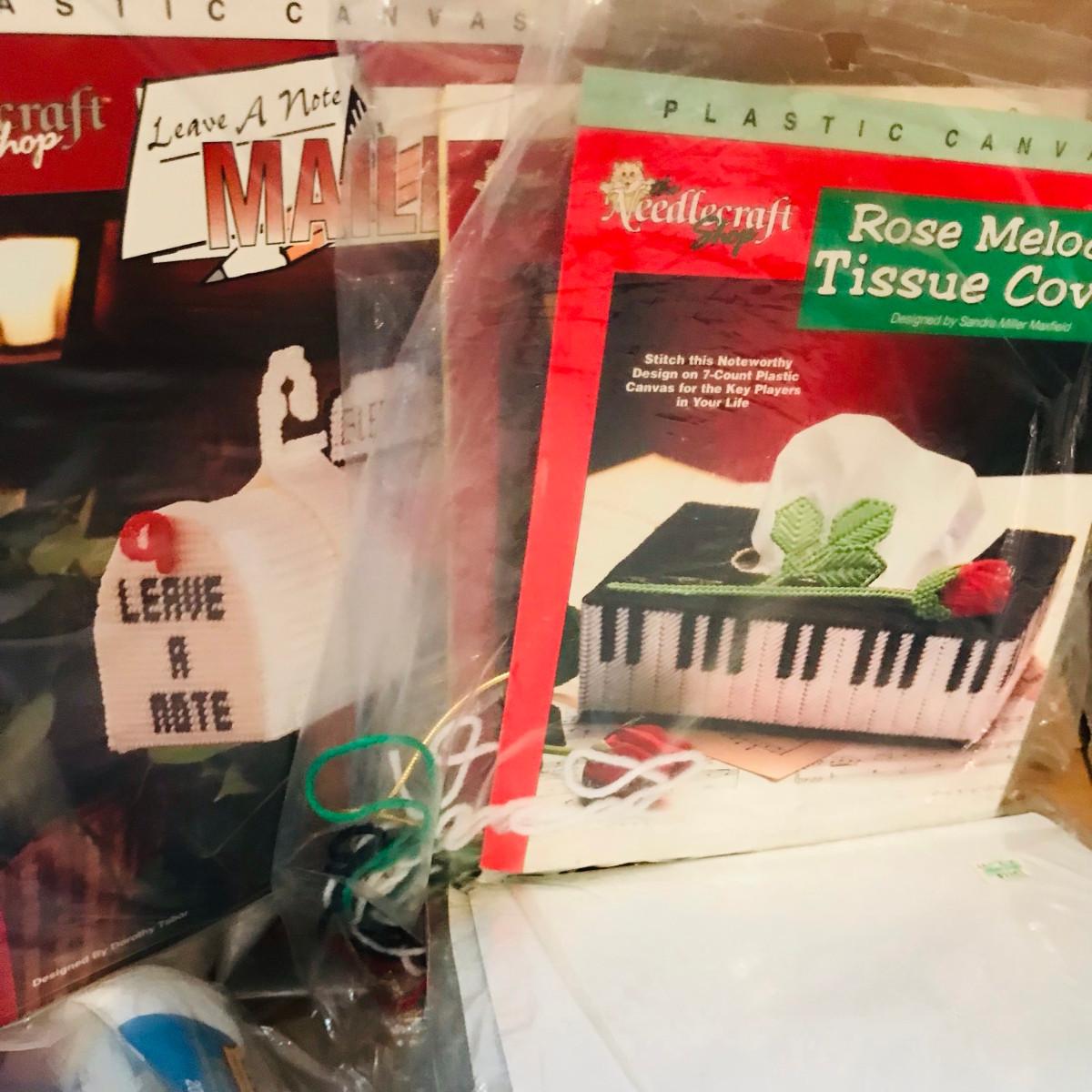 Large lot of Plastic Canvas Kits, mostly tissue box covers.