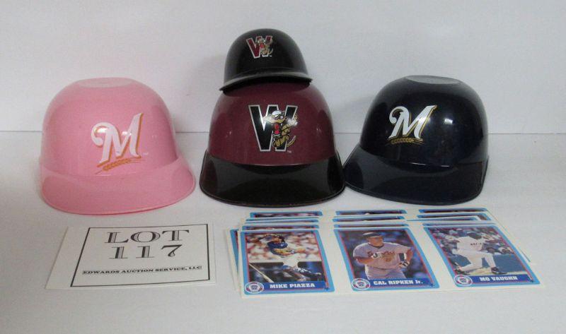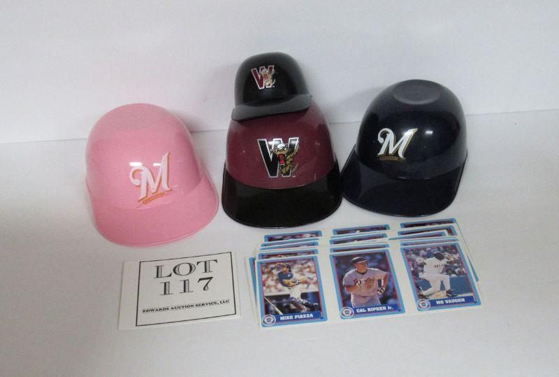 lot of Plastic Small Milwaukee Brewers and WI Timbler Rattlers Hats & Baseball Cards