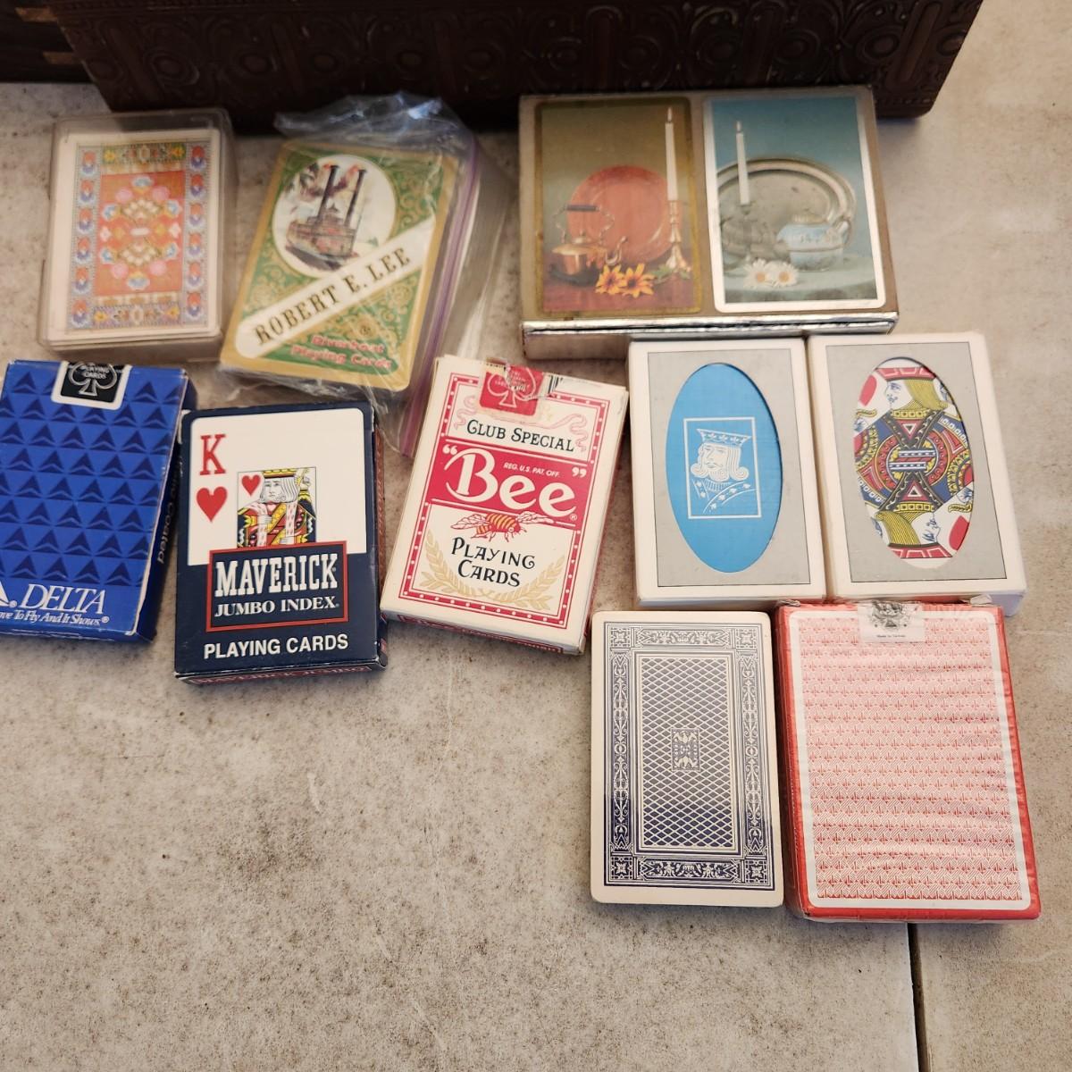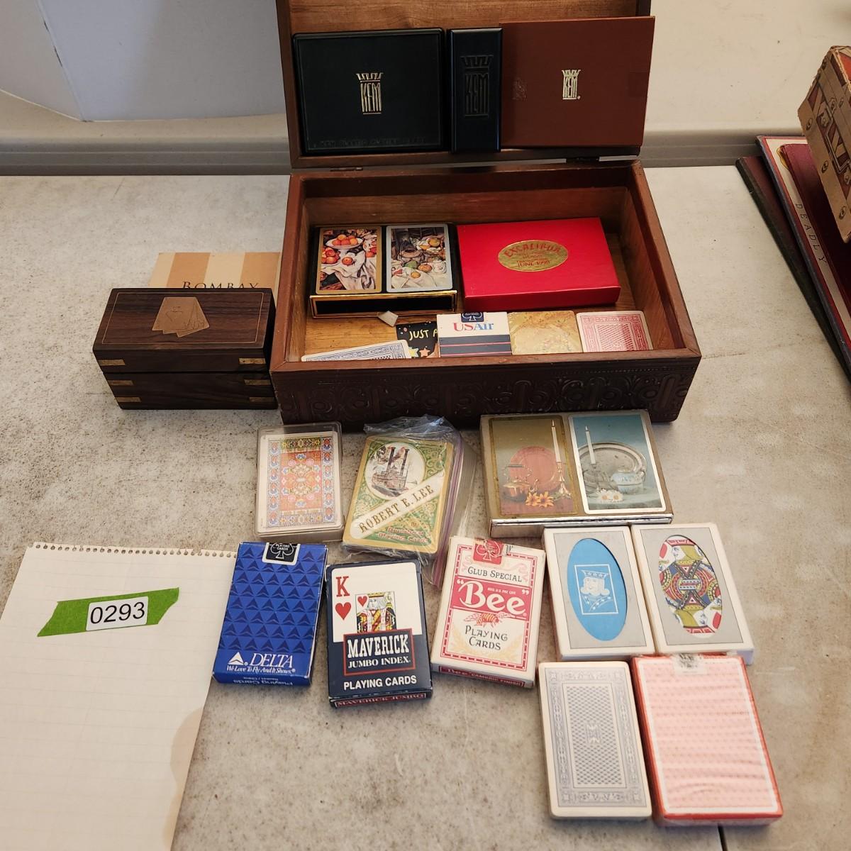 Lot of Playing Cards Kem Congress Wood Card Holder and Large Box
