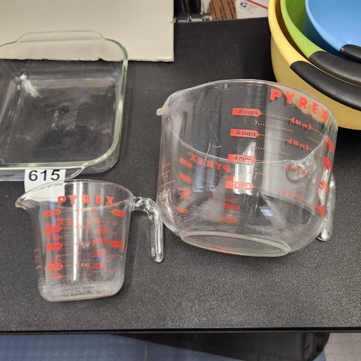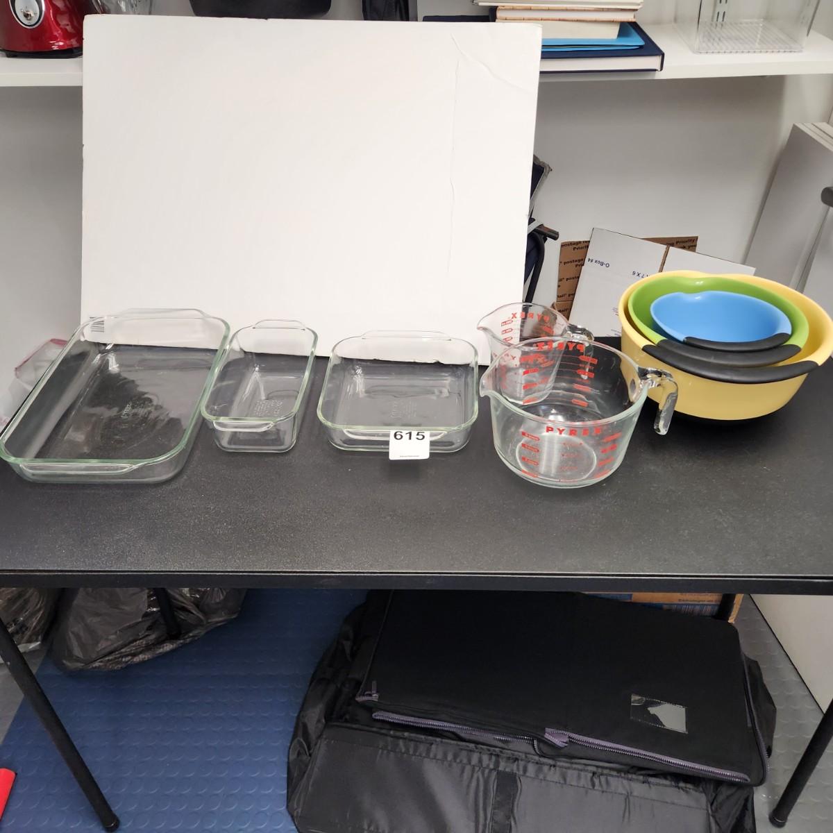 Lot of Pyrex Measure Cups, Baking Dishes, 3 OXO Nesting Bowls 1 Pyrex Bowl w lid