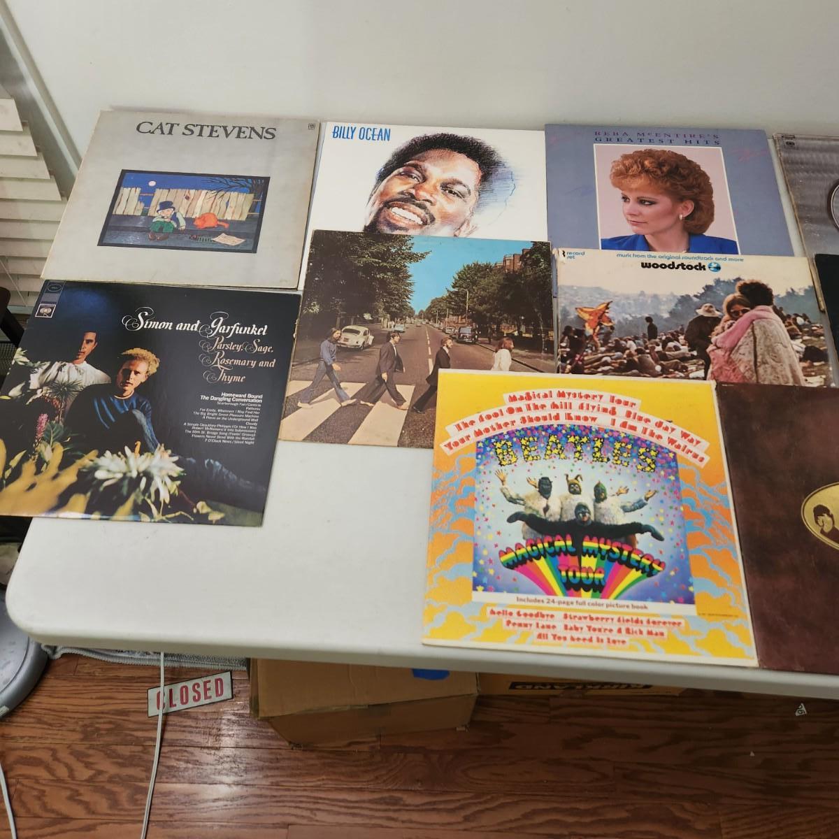 Lot of Record Albums Woodstock Beatles White Album, Magical Mystery Tour Abby Road Sgt Peppers Love Songs, Fleetwood MAc,