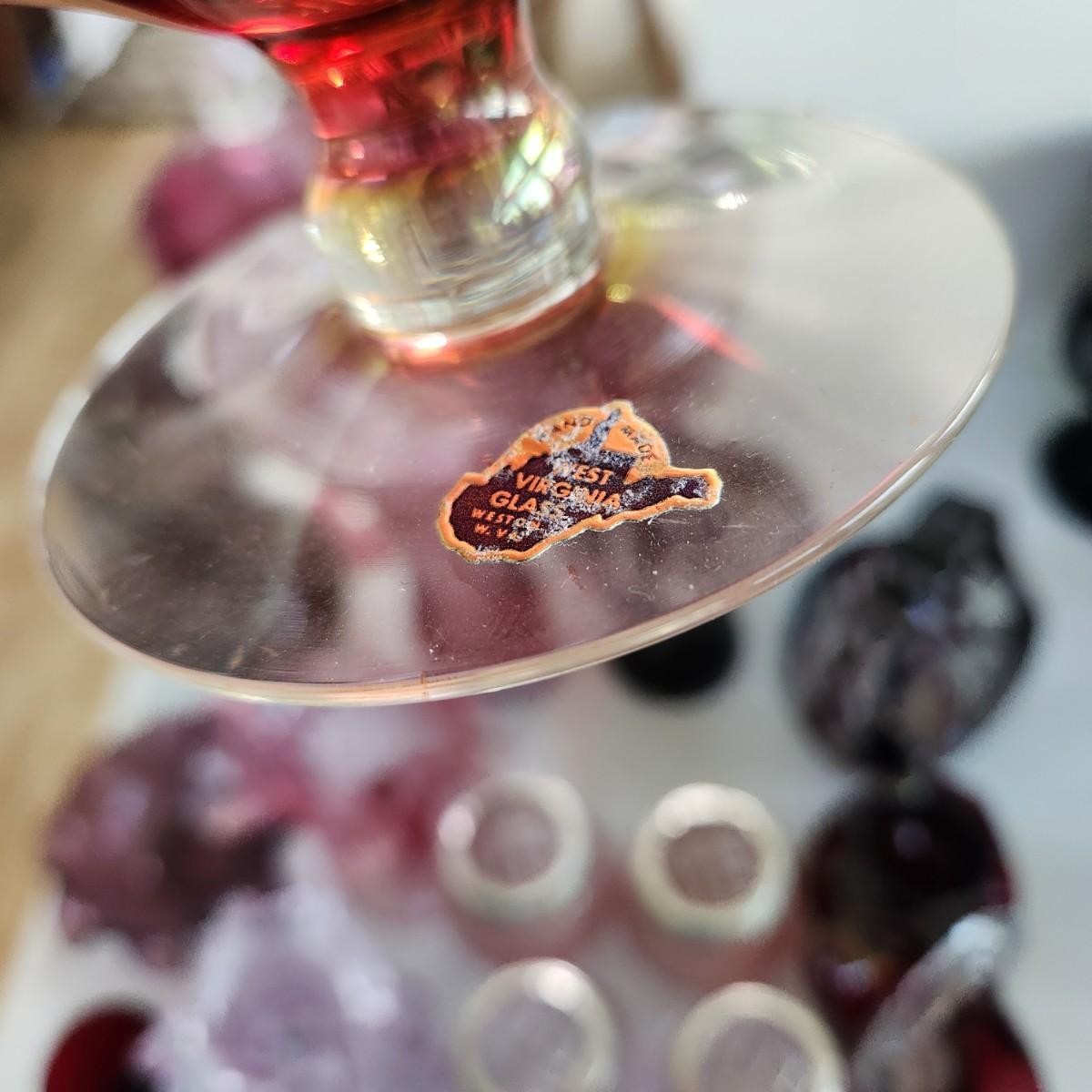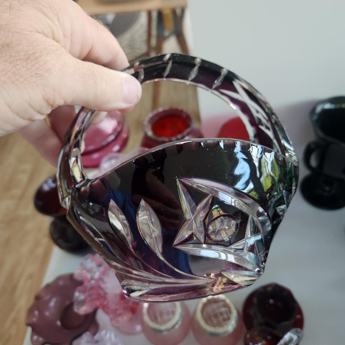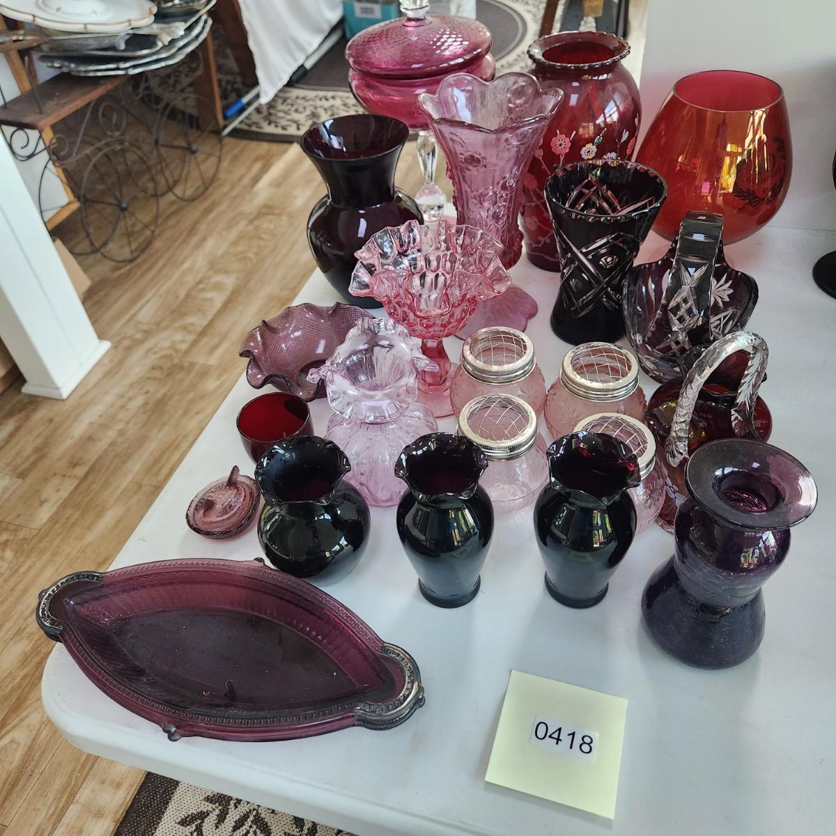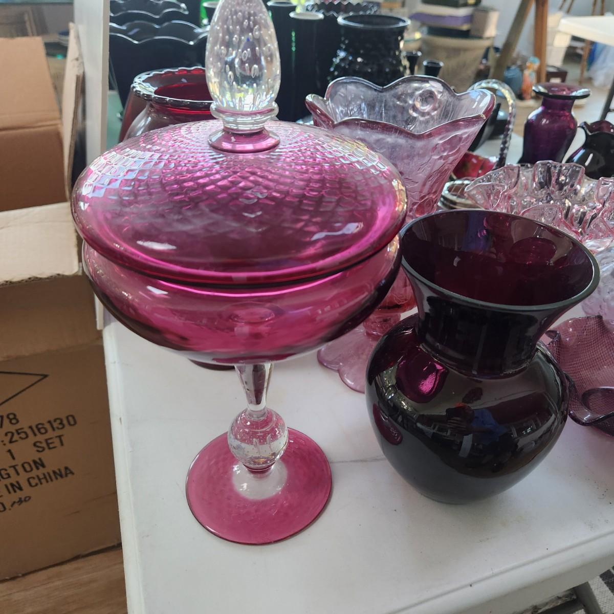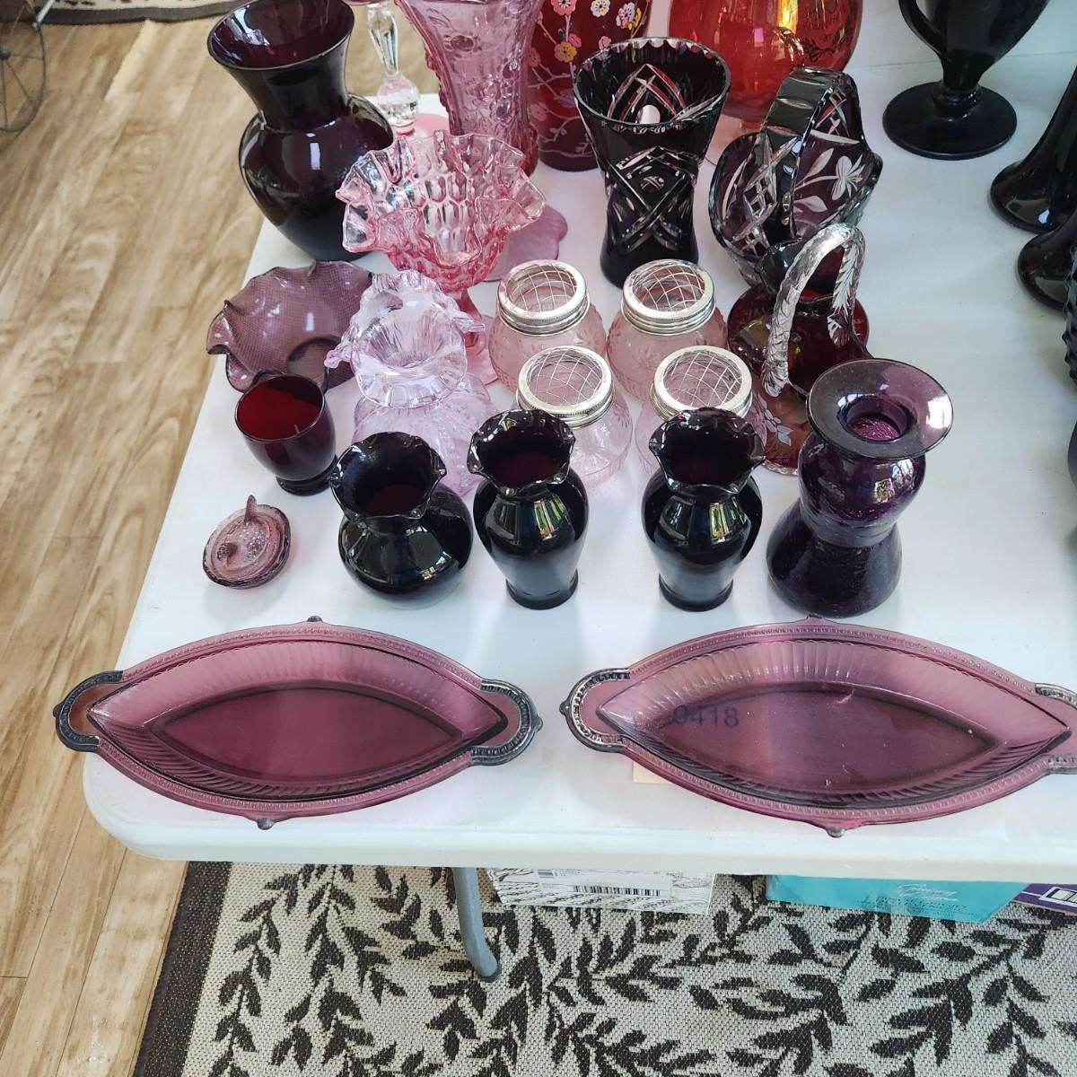 Lot of Red Pink Glassware , Bowls, Flower Vases, Serving Dishes
