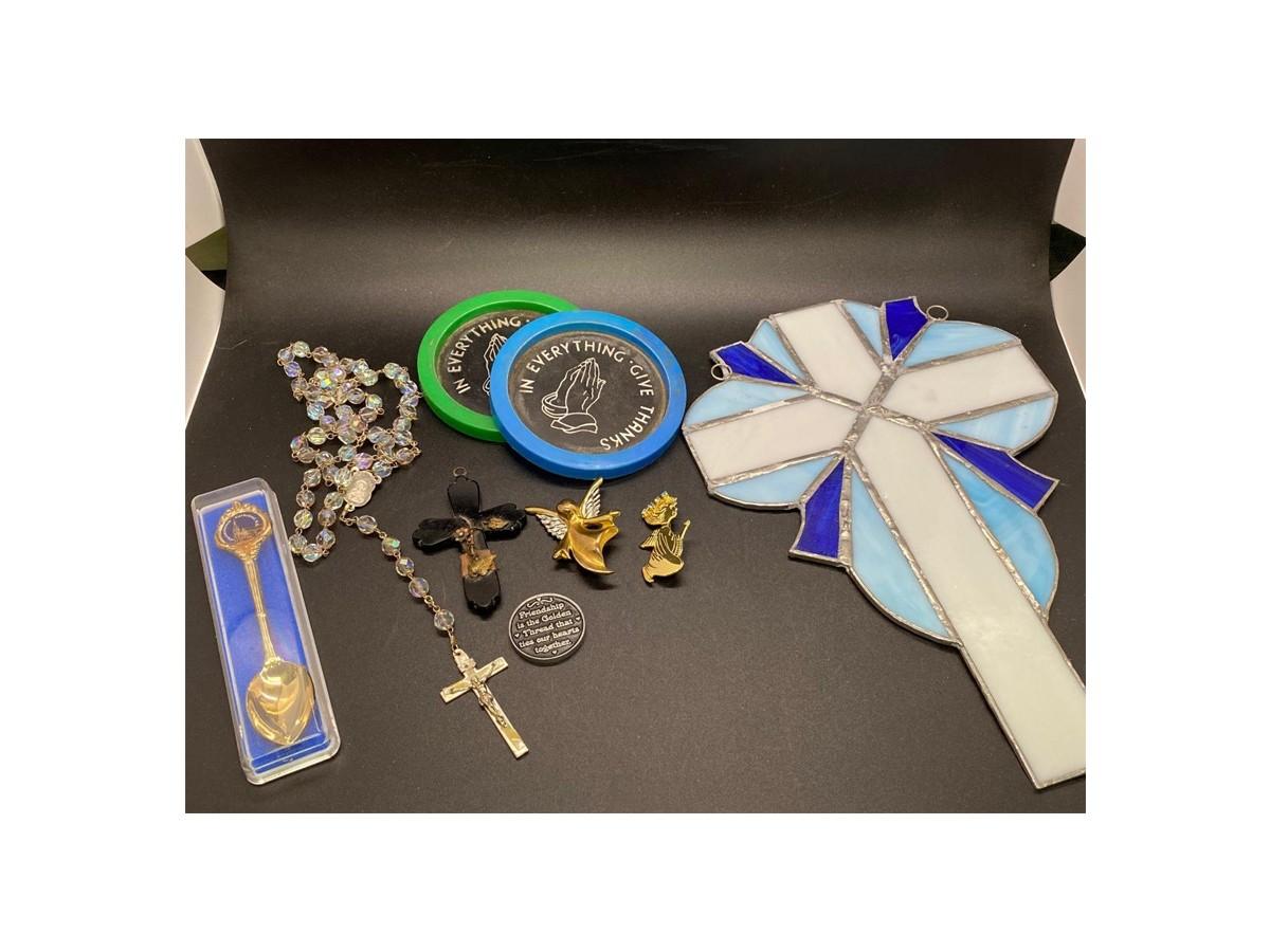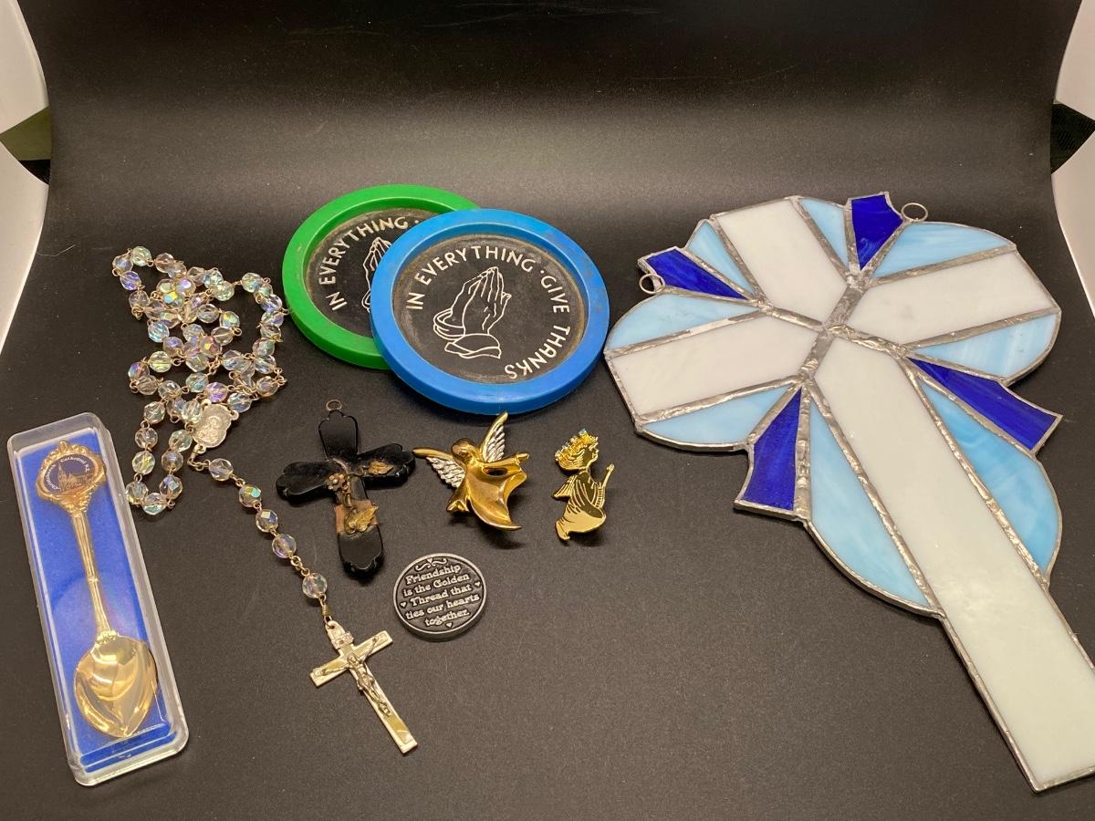Lot of Religious Home Decor, Trinkets, Pins, Church Souvenirs & More