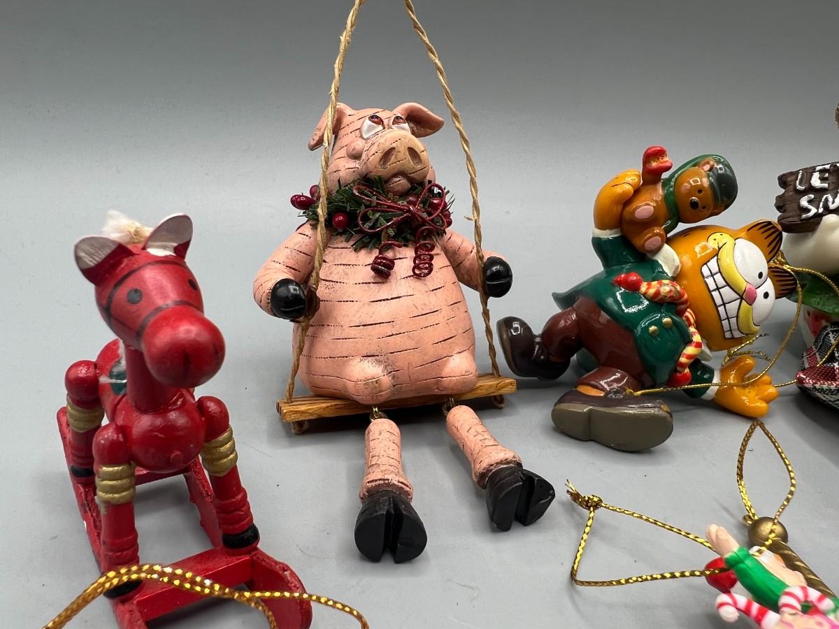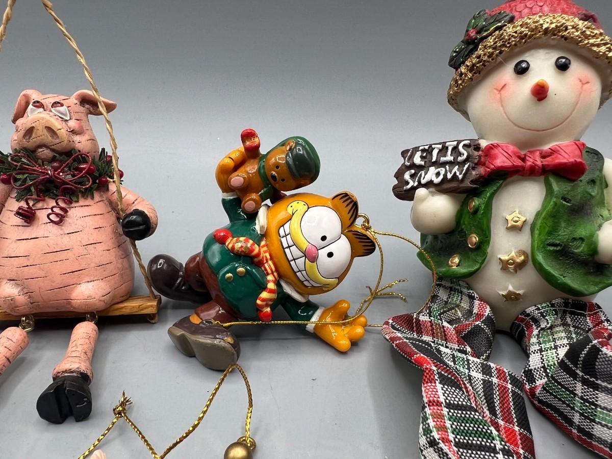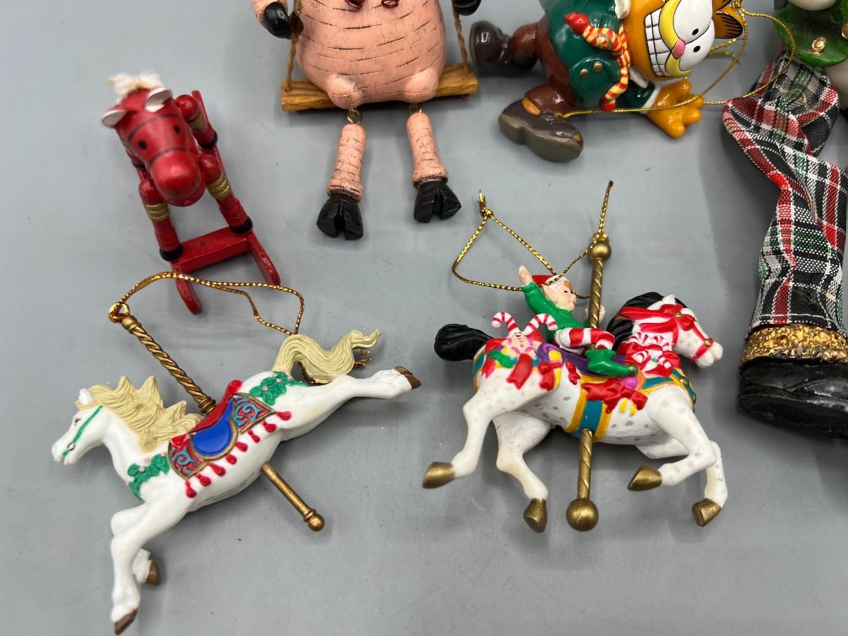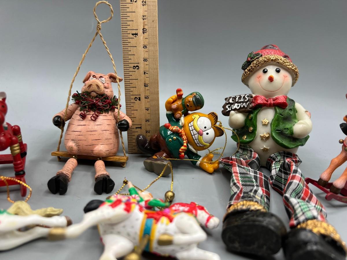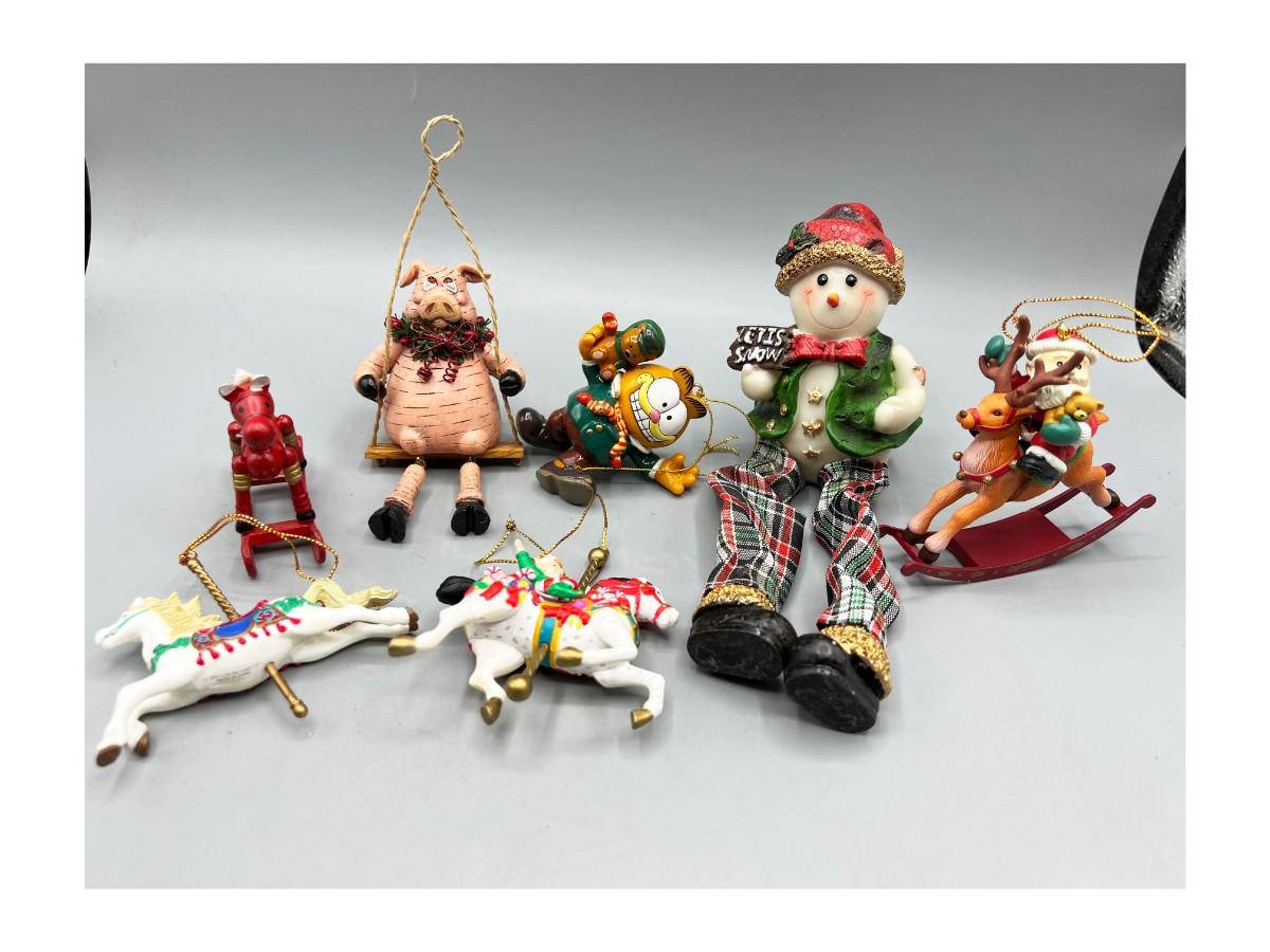 Lot of Resin Christmas Ornaments Carousel Horse, Garfield, Snowman Shelf Sitter & More