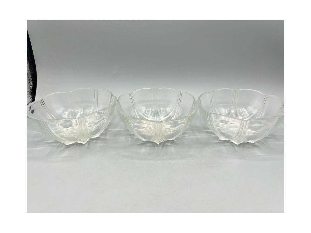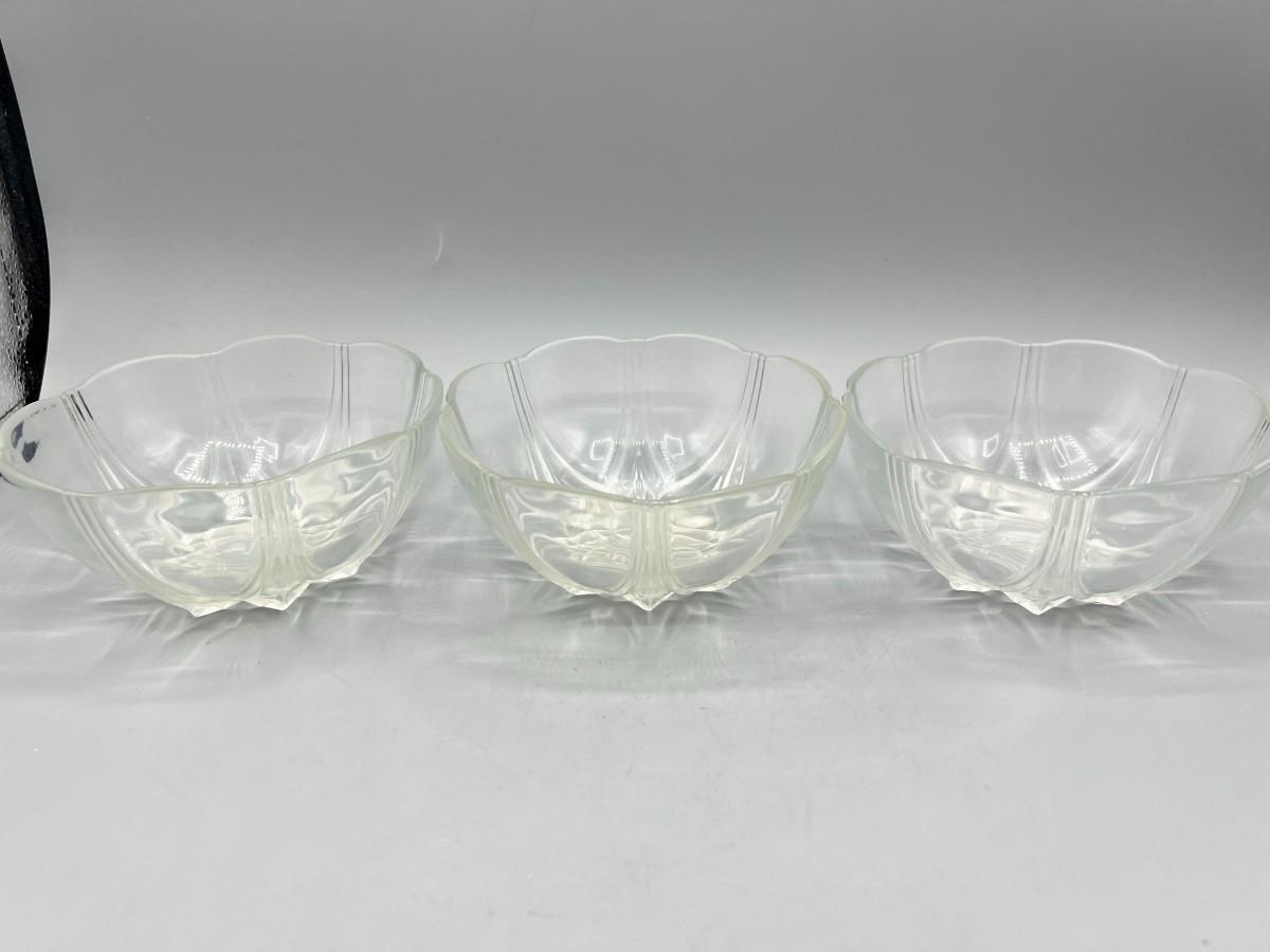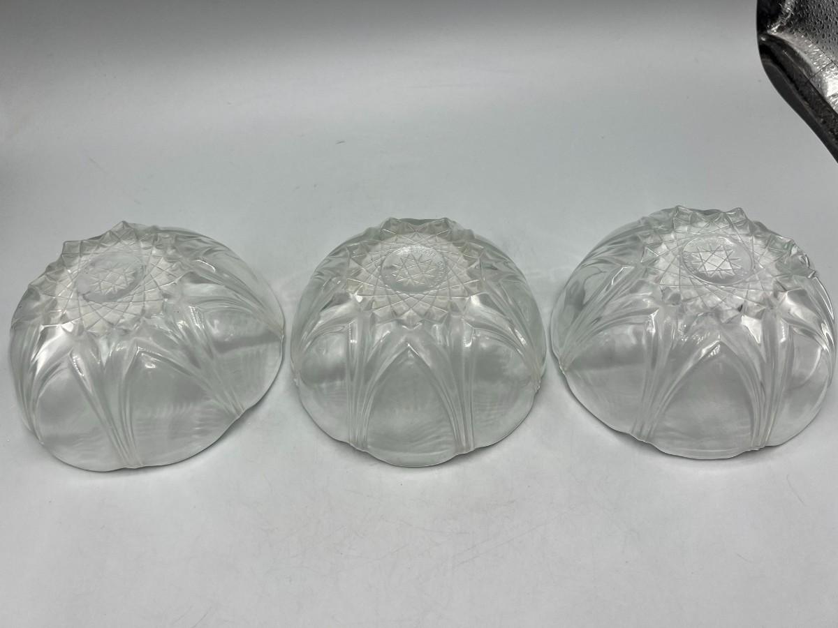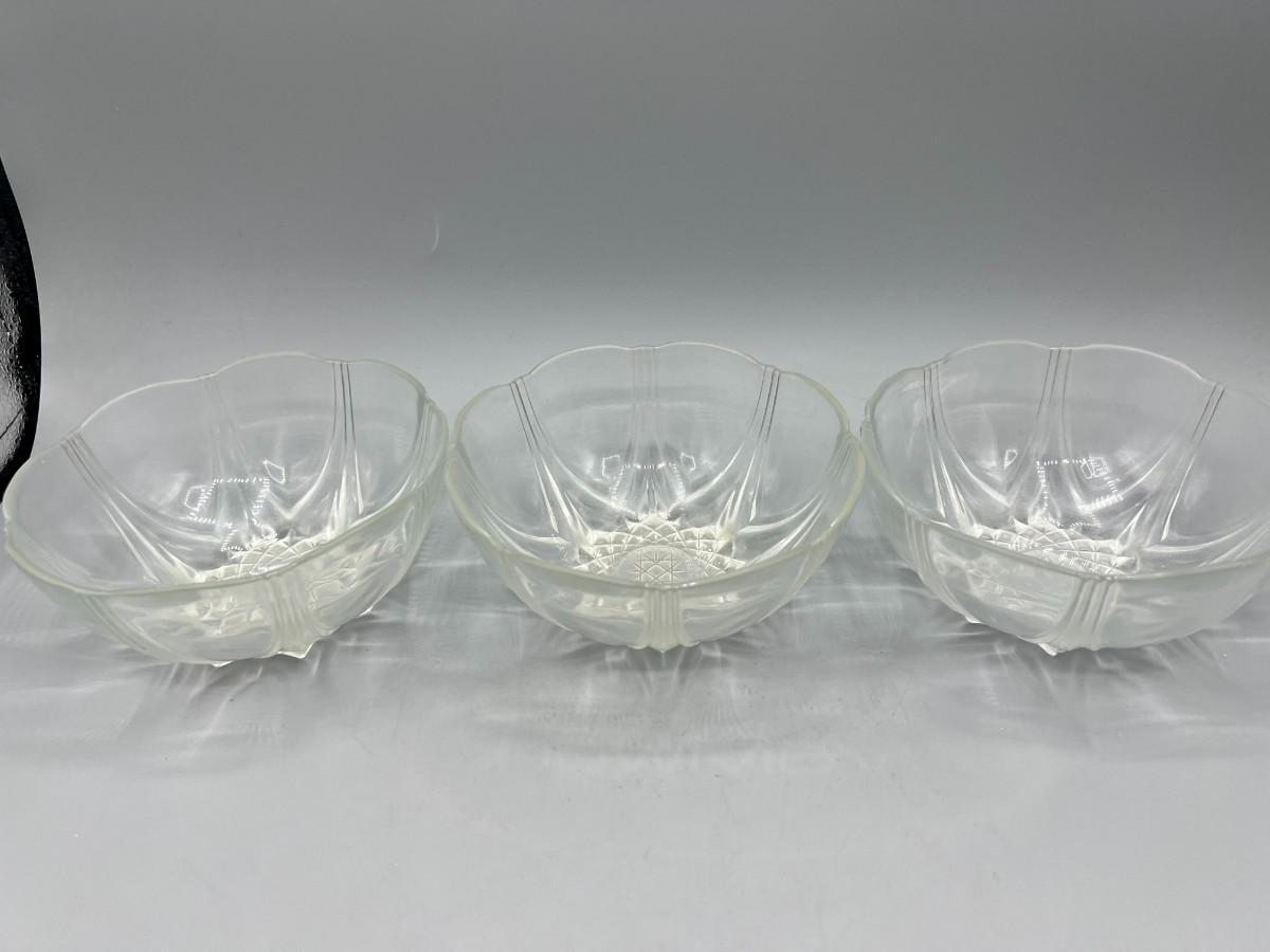 Lot of Retro Crystal Glass Geometrical Pattern Desert Food Bowls