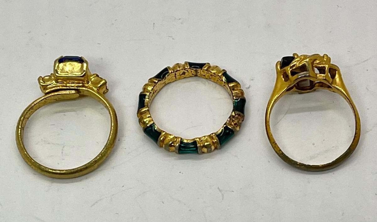 There is no significant damage to the rings and is in overall good wearable or collectible condition. Check pictures for more details and for sizing.