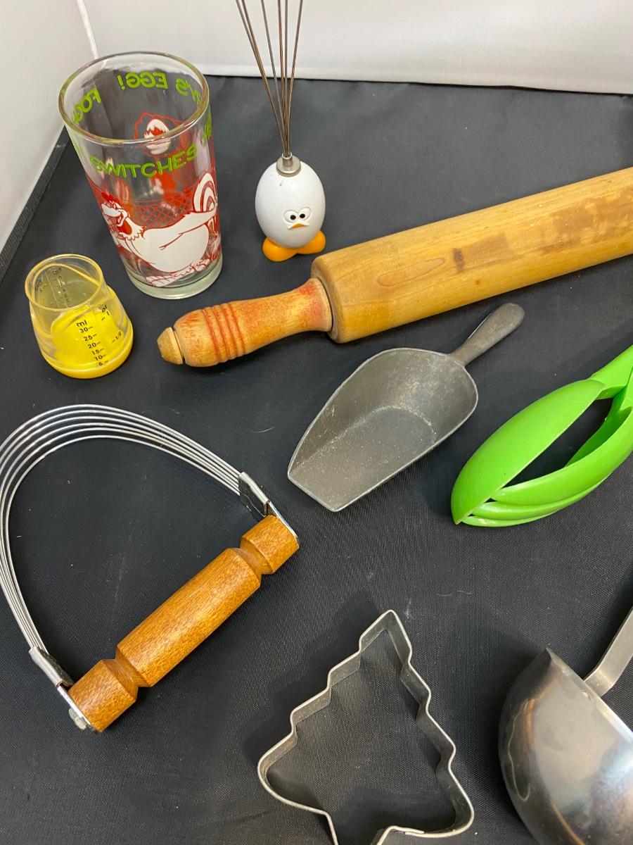 Lot of Retro Kitchenware, Bakeware, & More, there is no significant damage to any of the pieces and is in good useable condition. Check pictures for more details and for what comes in the lot.