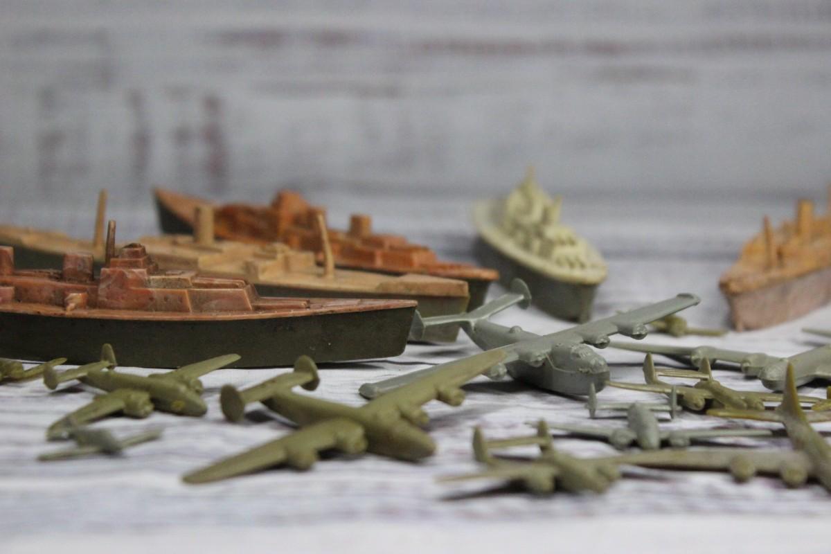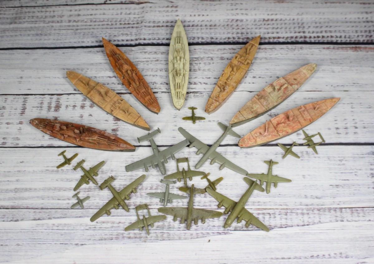Lot of retro plastic naval ships and planes, there is some natural wear and one of the ships tops is not attached to the body. Planes vary in size, refer to the pictures above for reference.