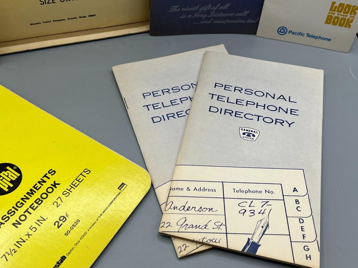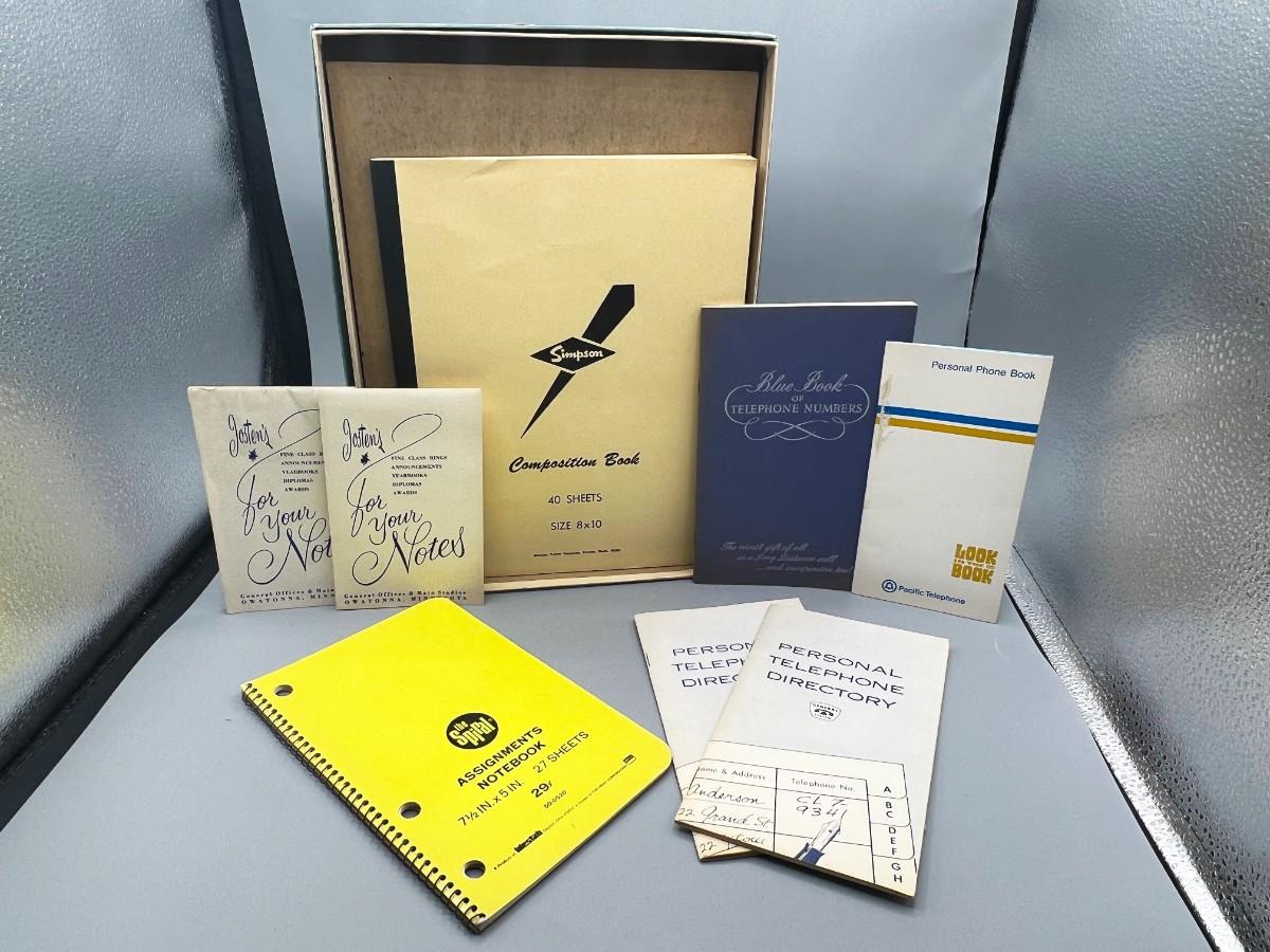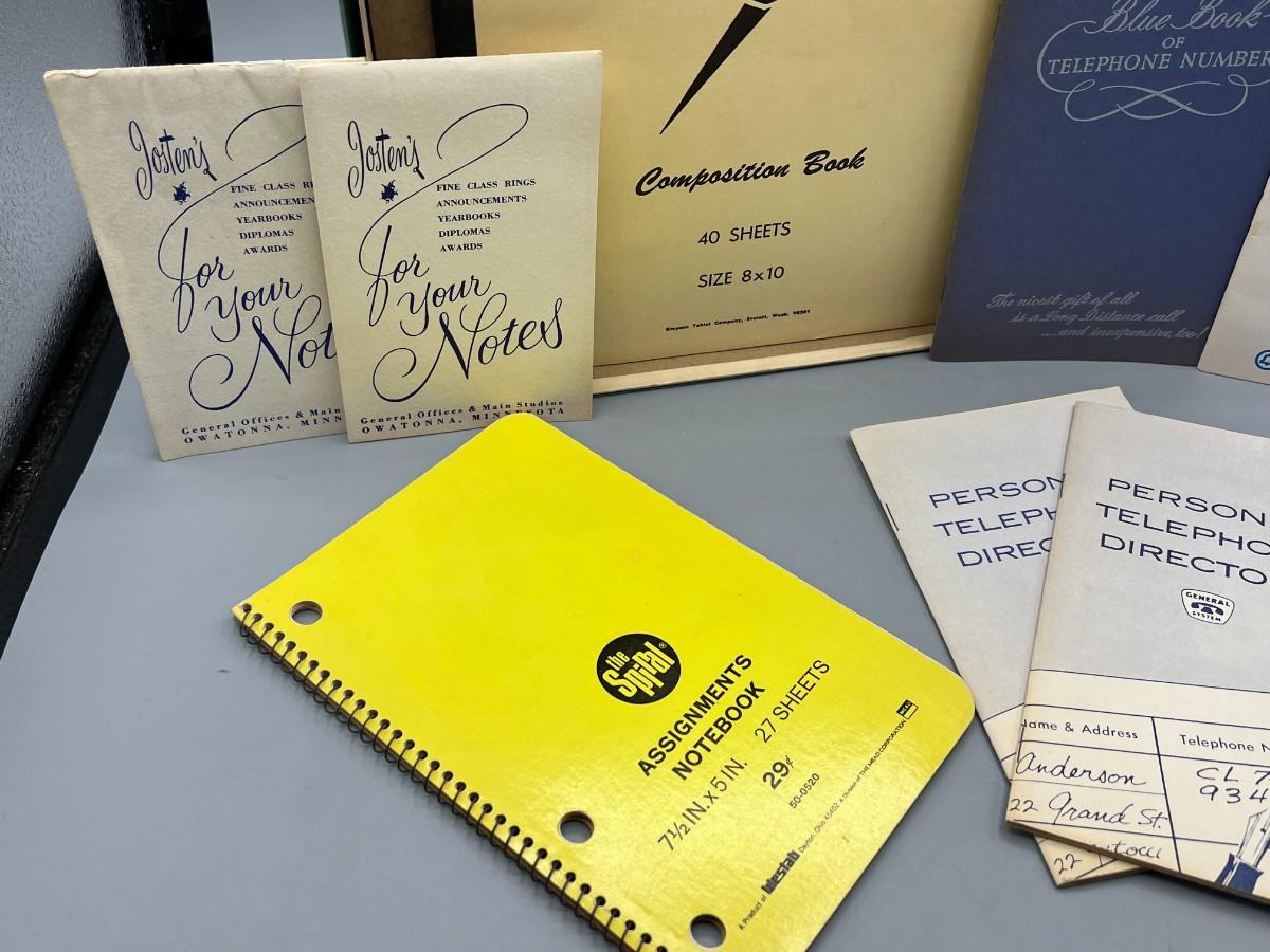 Lot of Retro School Office Supplies Composition Books, Notebooks, Telephone Books & More