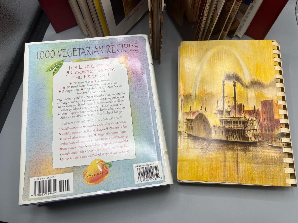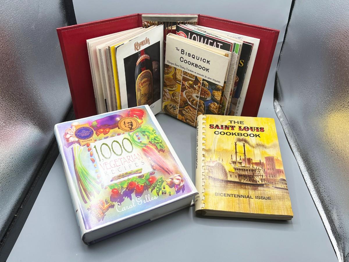 Lot of Retro Vegetarian Saint Louis Cookbooks & Binder Filled with Recipes, there is no significant damage to the books and is in good usable condition. Check pictures for more details.