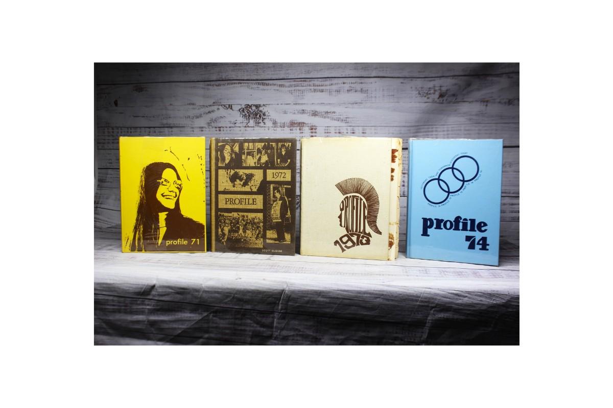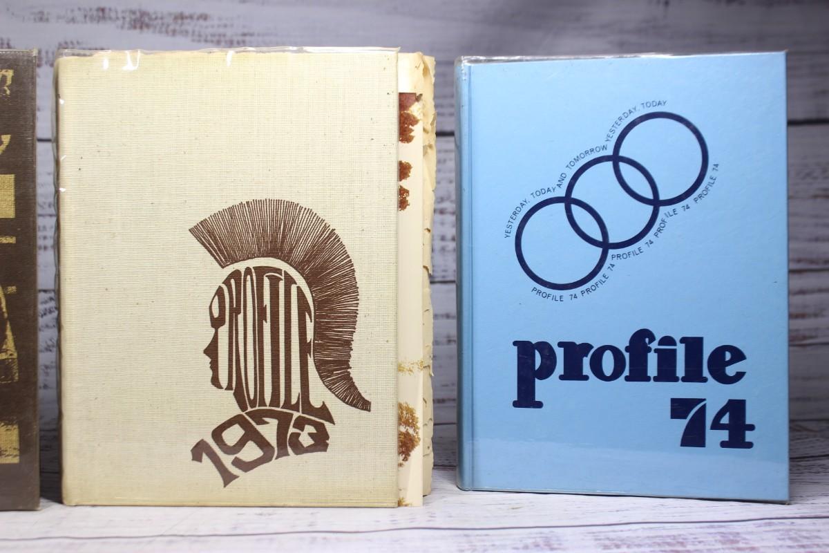 Lot of Retro Vintage 1971 - 74 High School Yearbooks, there is some vintage wear to the yearbooks, but there is no significant rips or tears and is in good condition. There are signed names and notes throughout the year books, check pictures for more details and for sizing.
